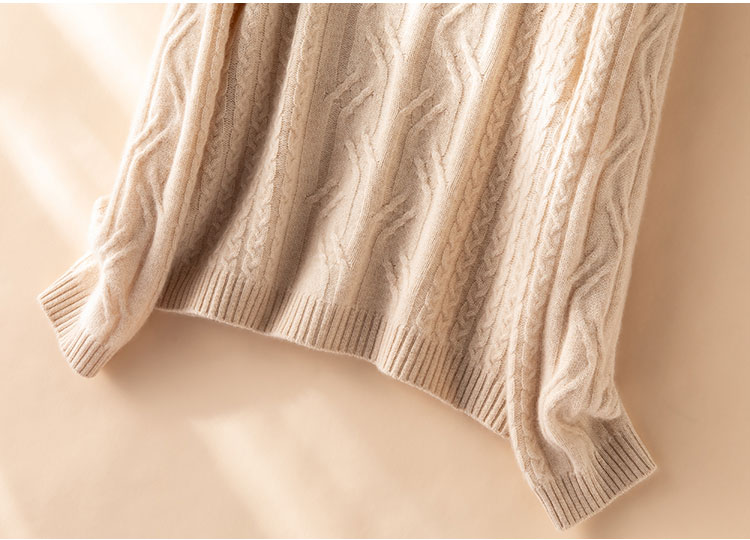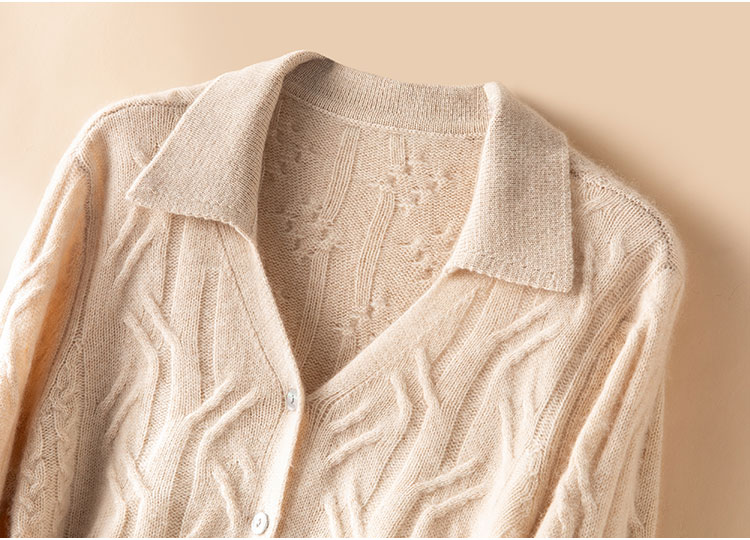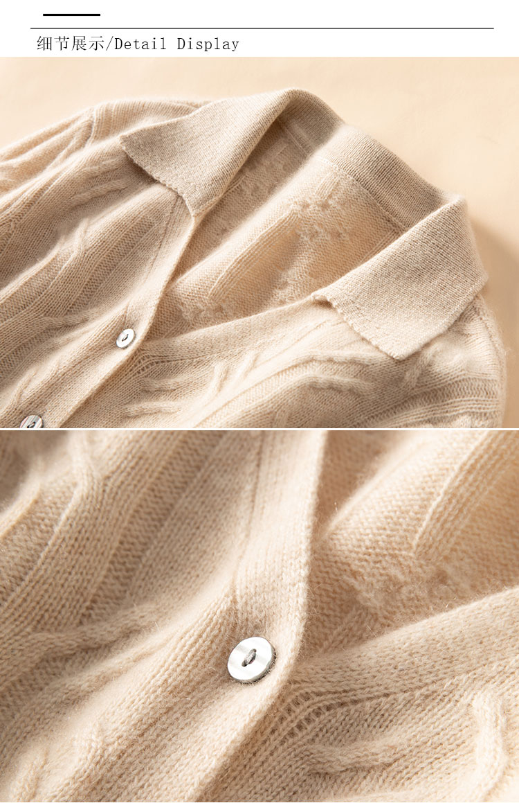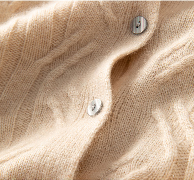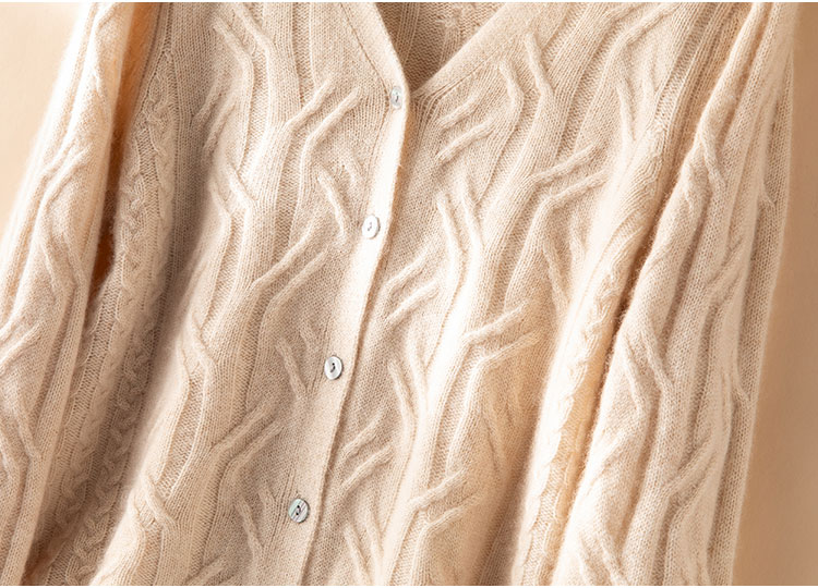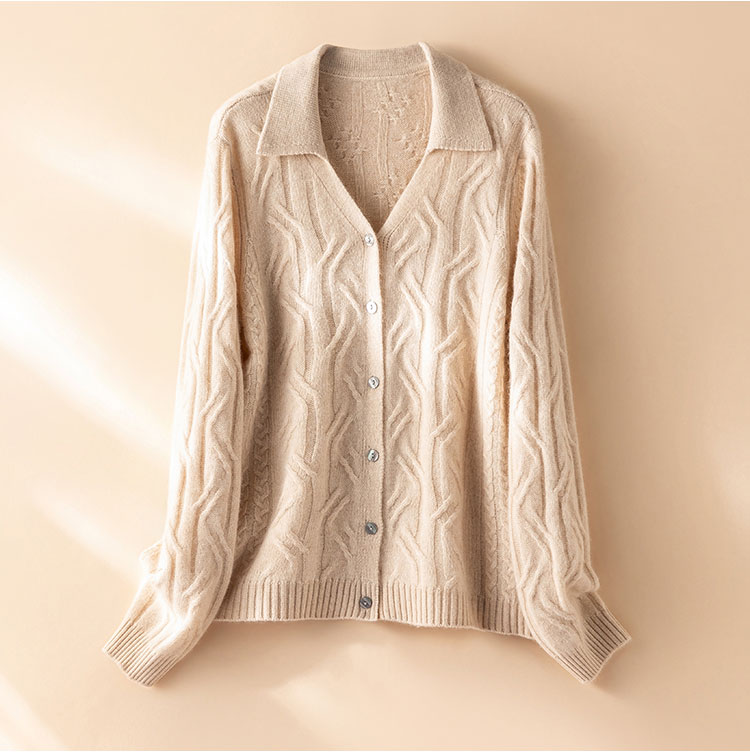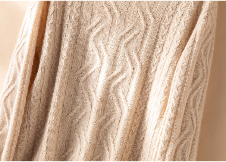 温婉如玉~100%纯山羊绒衫女剪刀领加厚绞花外套百搭毛衣