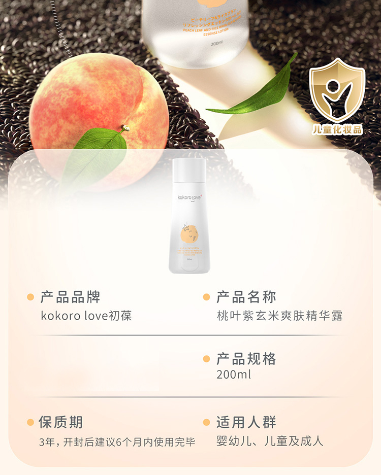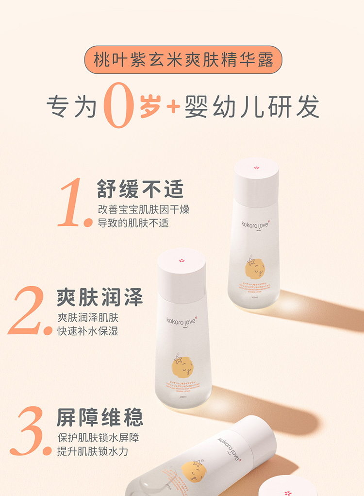 kokoro love桃叶紫玄米爽肤精华露200ml