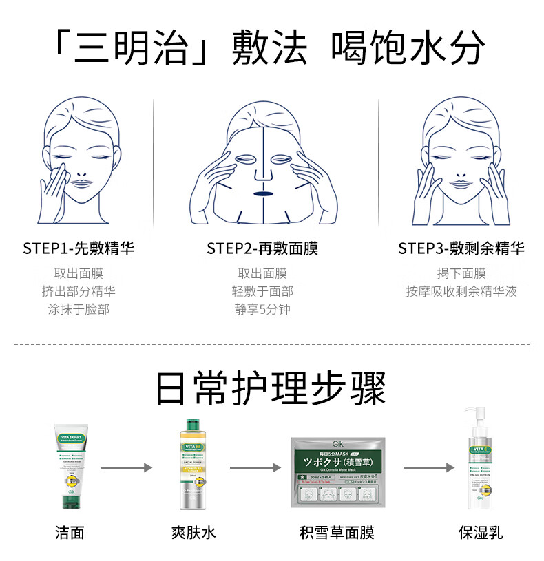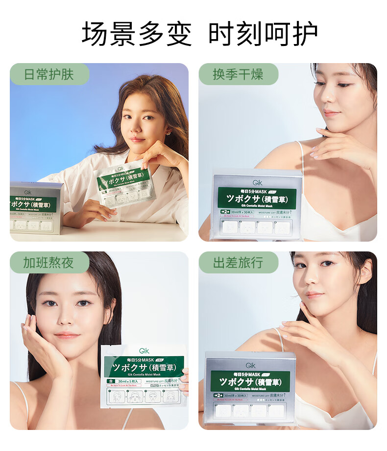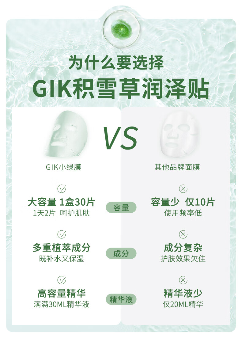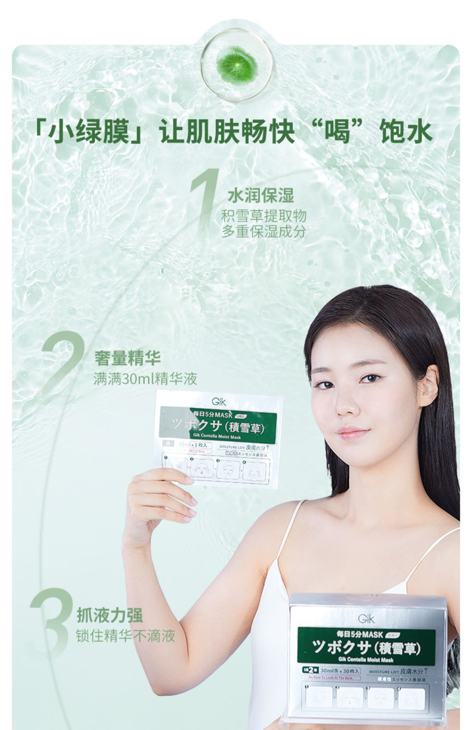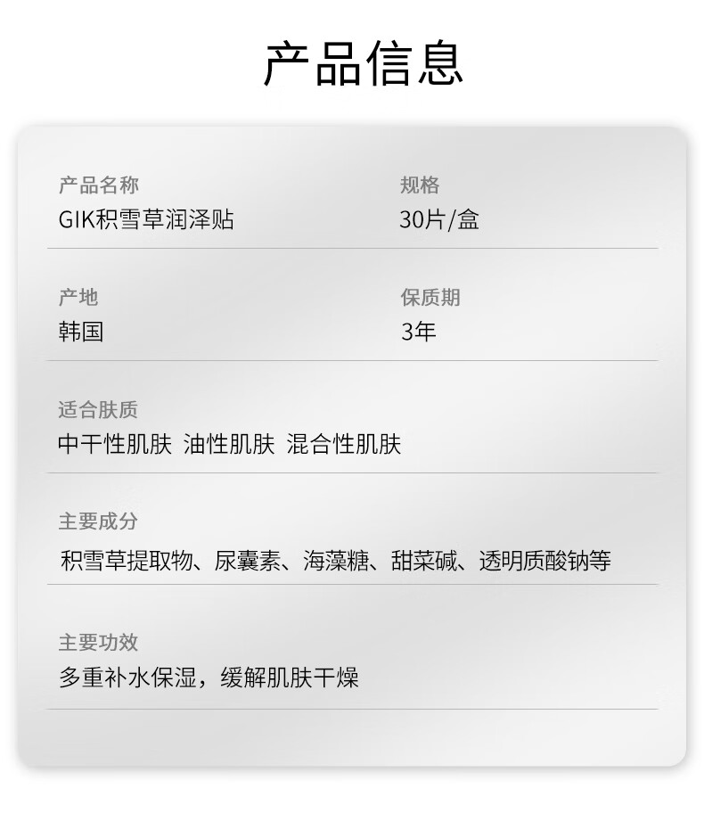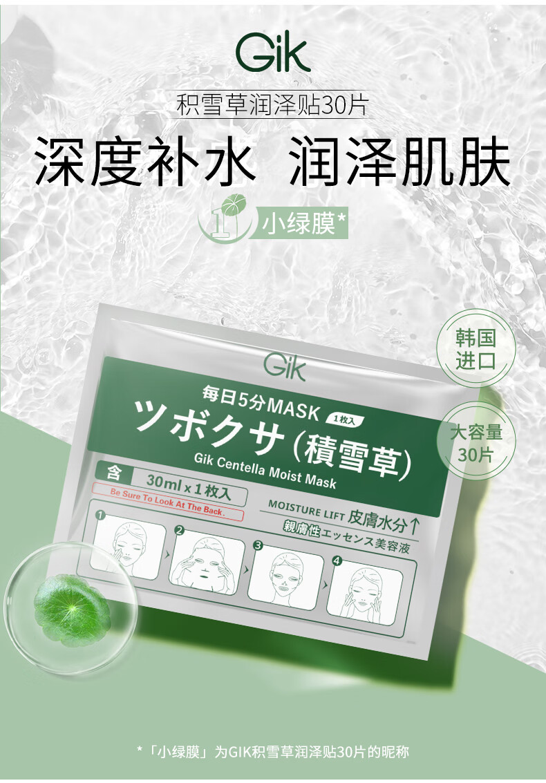 GIK韩国进口积雪草润泽贴精华面膜贴肌肤补水保湿独立包装30ml*30片/盒