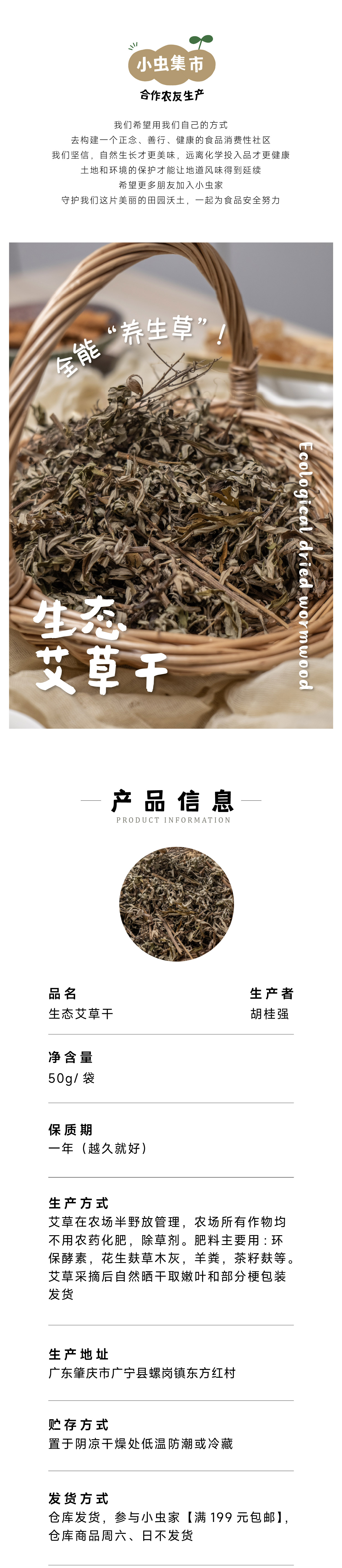 【积分享包邮】生态艾草干(带梗发货) 50g/袋*2 | 合作农友生产,产自广东肇庆,生产者:胡桂强 &【公平贸易农人定价】