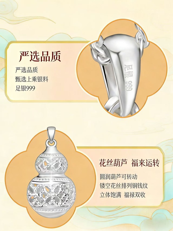 优选丨【新年双节特惠:GIRATI999银项链】S990葫芦吊坠项链/990新中式福禄时来运转葫芦吊坠 项链/五帝币项链一物一证 带礼盒