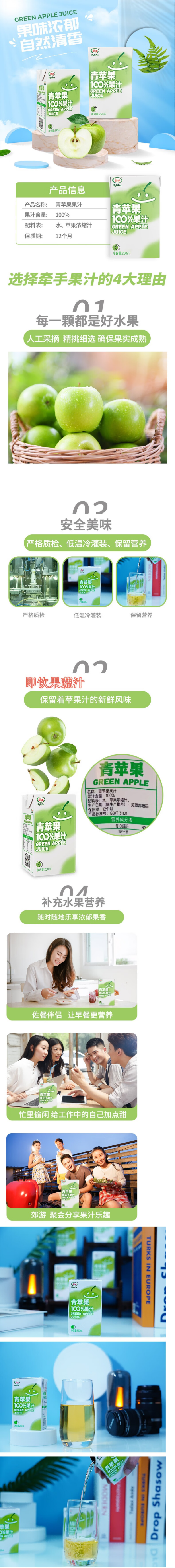 牵手(together)青苹果100%果汁饮品青苹果汁250ml*10盒