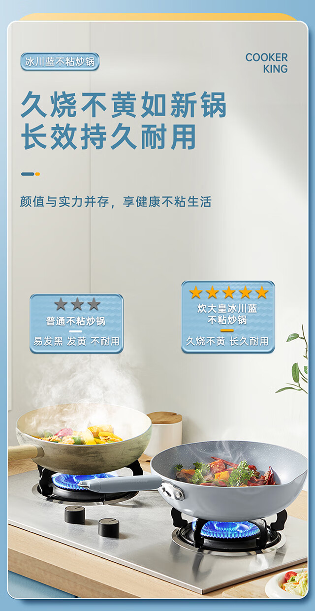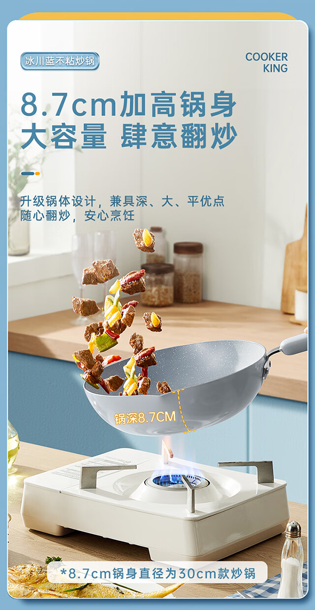 炊大皇 冰川蓝不粘炒锅28cm CG28BC