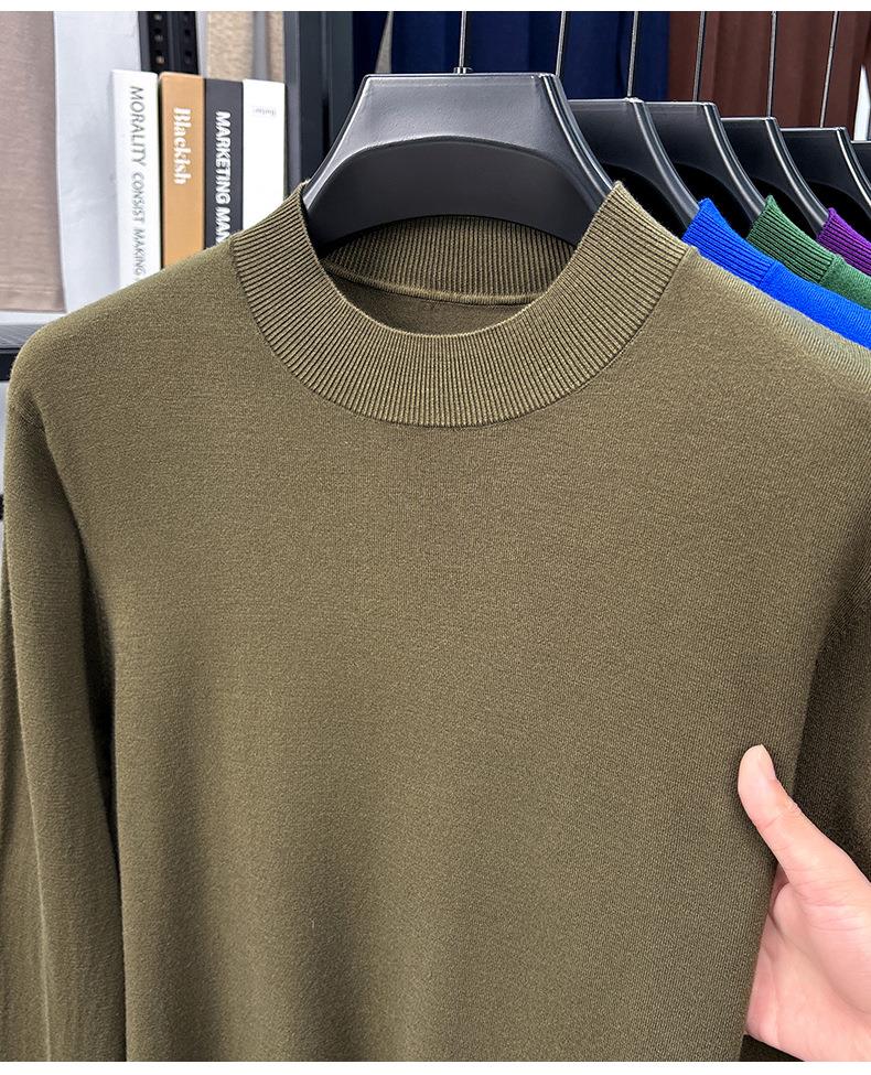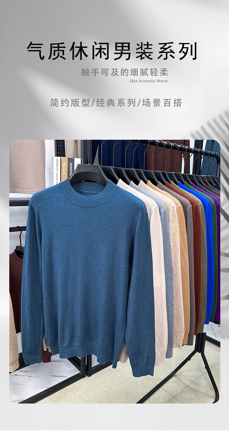 【自在羊毛衫】桑蚕丝15%绵羊毛85%半高领长袖男士毛衣男装针织打底衫毛T