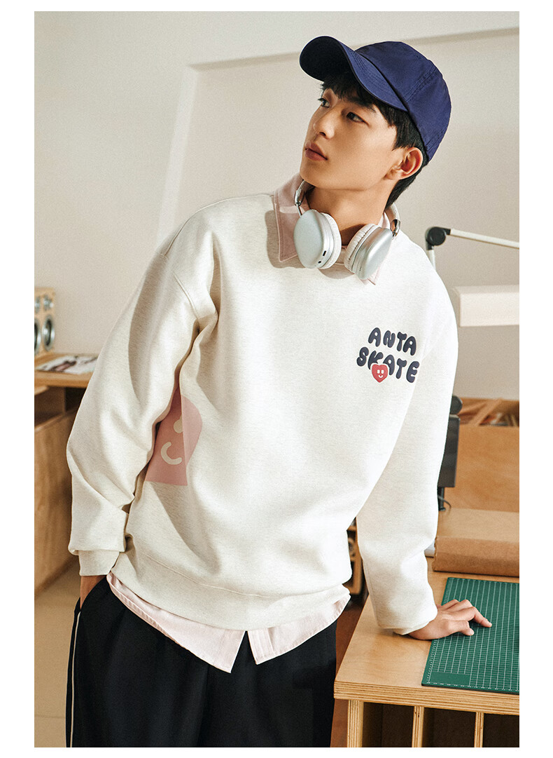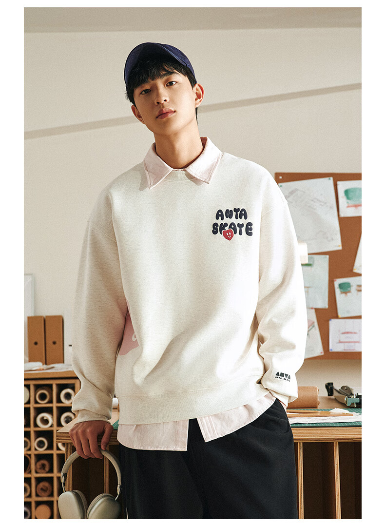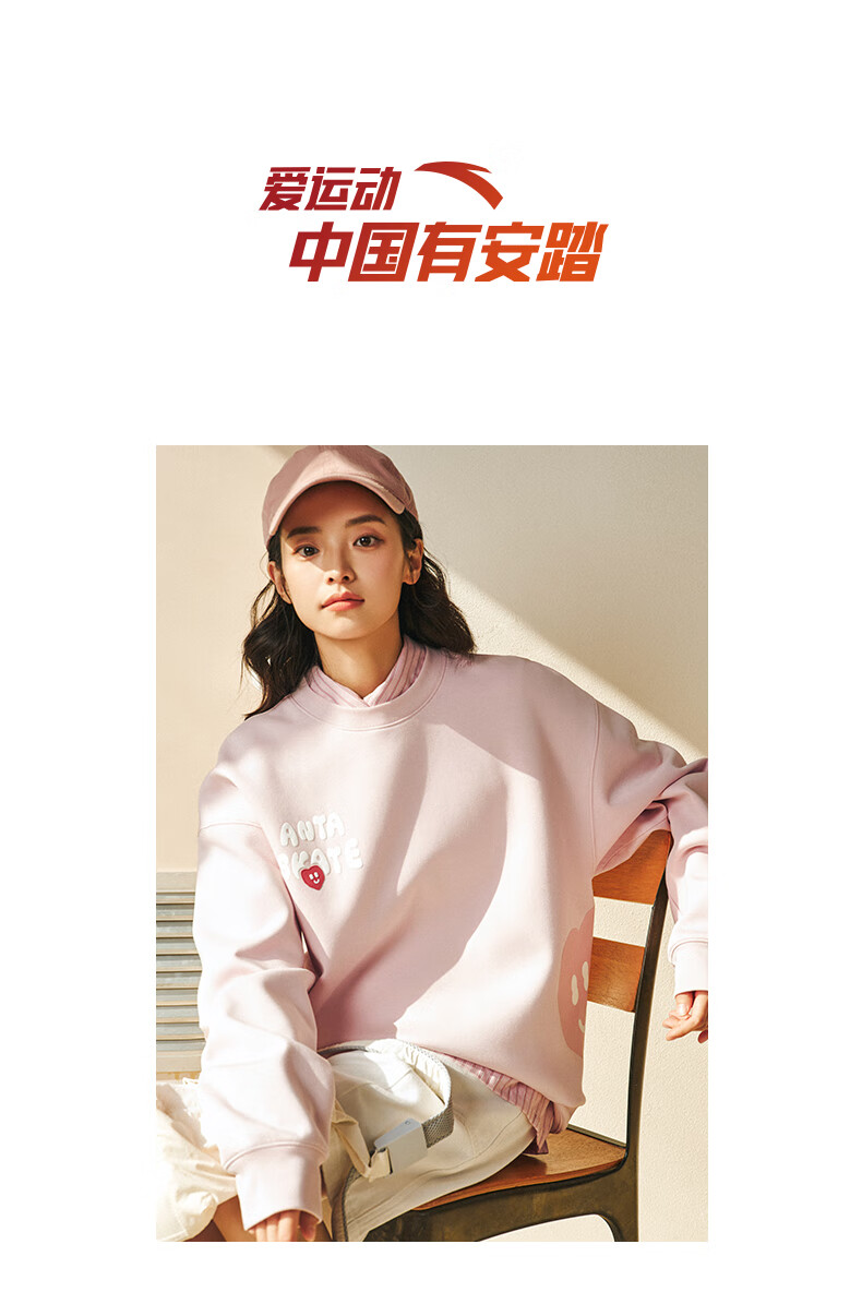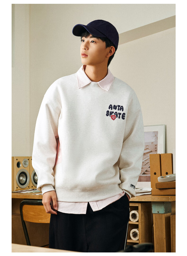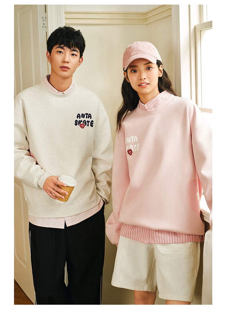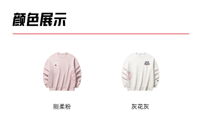 安踏爱心卫衣丨圆领套头卫衣男女同款春季印花休闲长袖上衣172528703