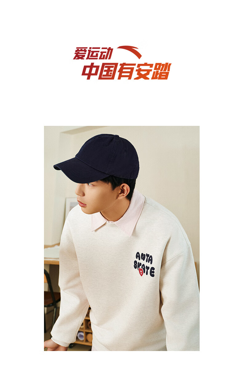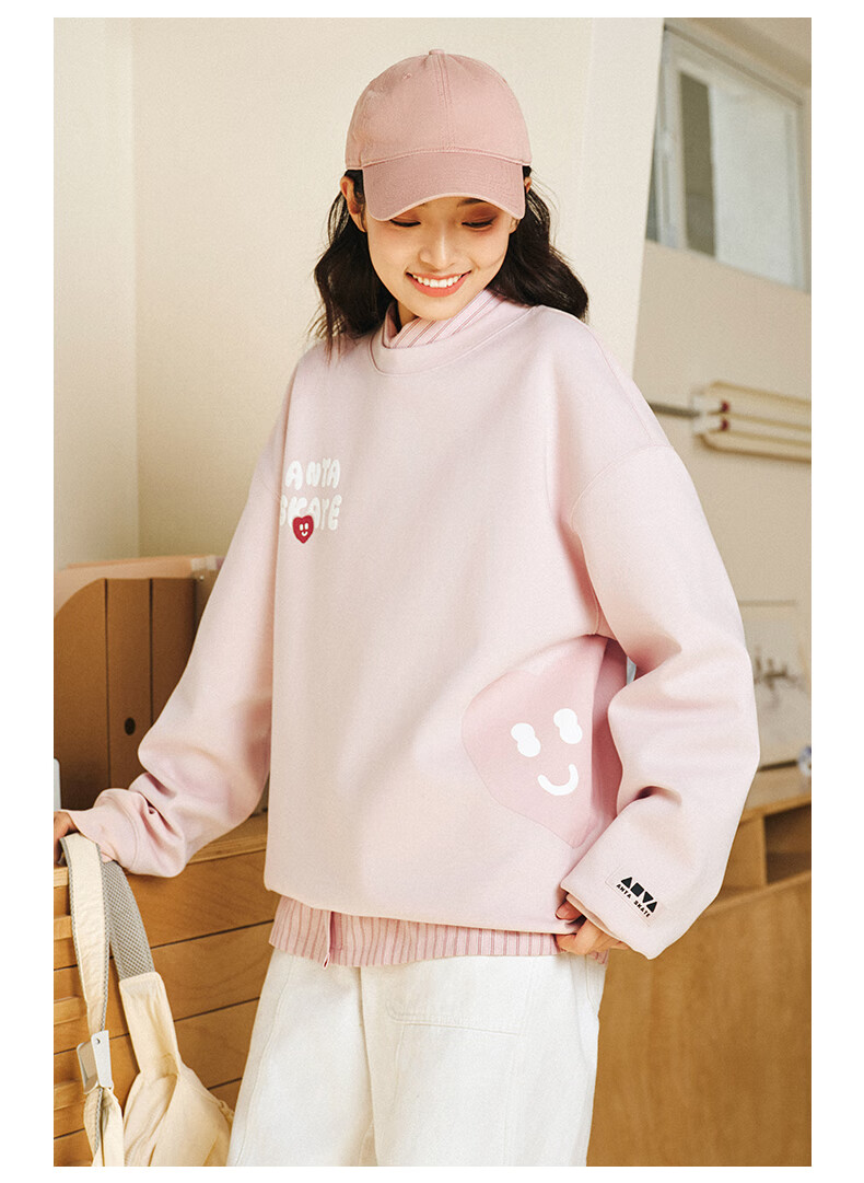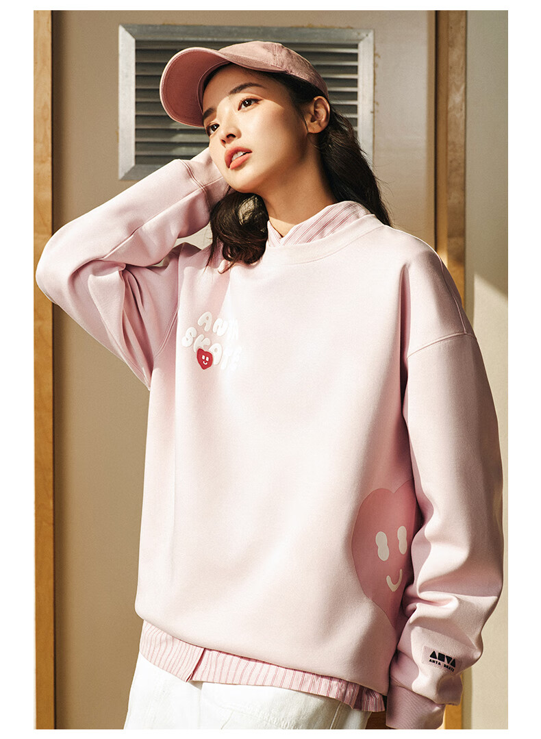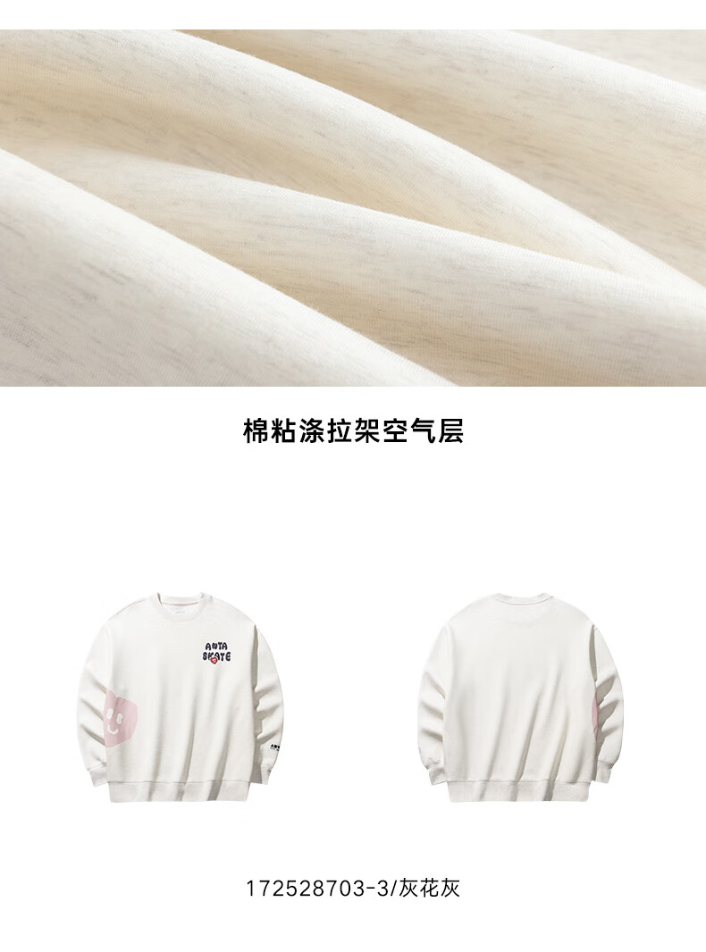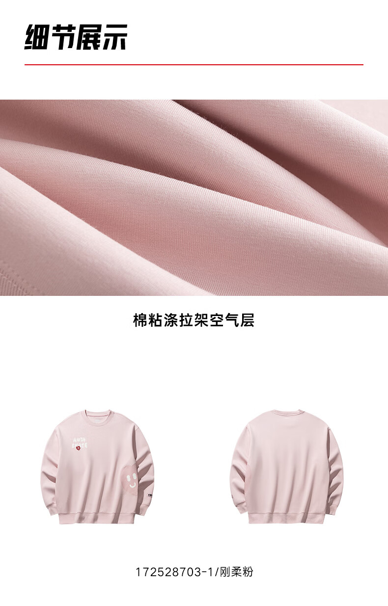 安踏爱心卫衣丨圆领套头卫衣男女同款春季印花休闲长袖上衣172528703