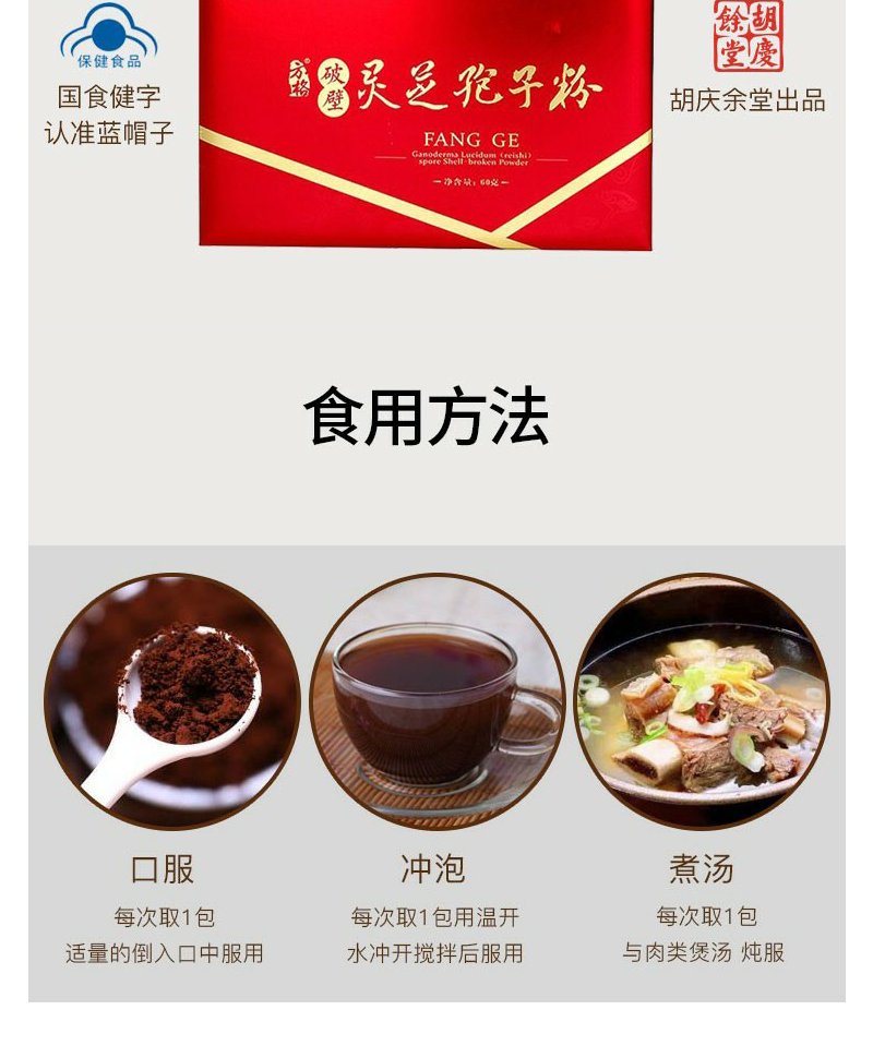 胡庆余堂 方格破壁灵芝孢子粉 1.5g/袋*10袋/盒*4盒