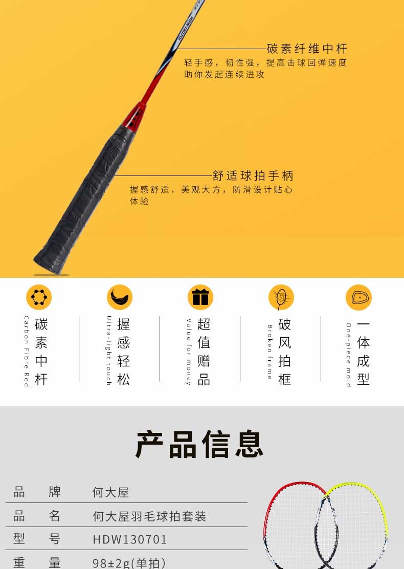 何大屋(Hodtown)羽毛球拍 羽毛球拍套装HDW130701