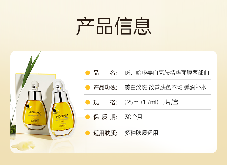 咪咕哈啦美白亮肤精华面膜两部曲补水保湿淡斑烟酰胺提亮5片/盒