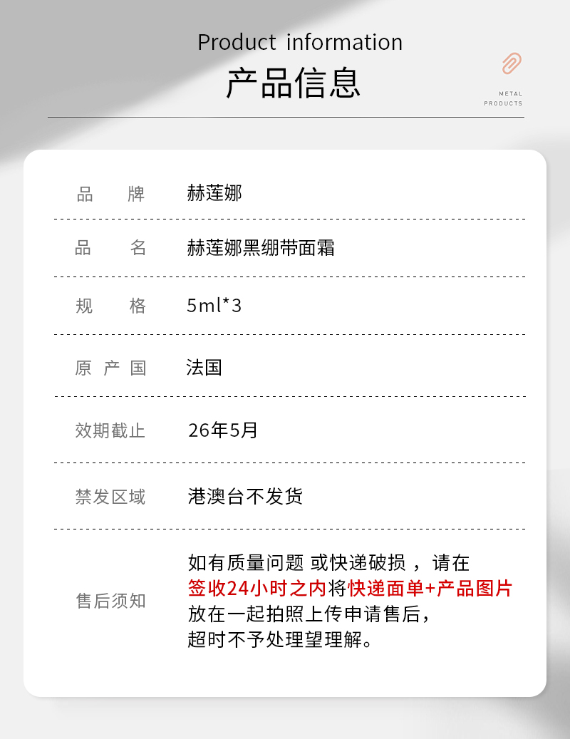 【限时福利】HR/赫莲娜黑绷带面霜,5ml*3体验装(下单72h后发货)