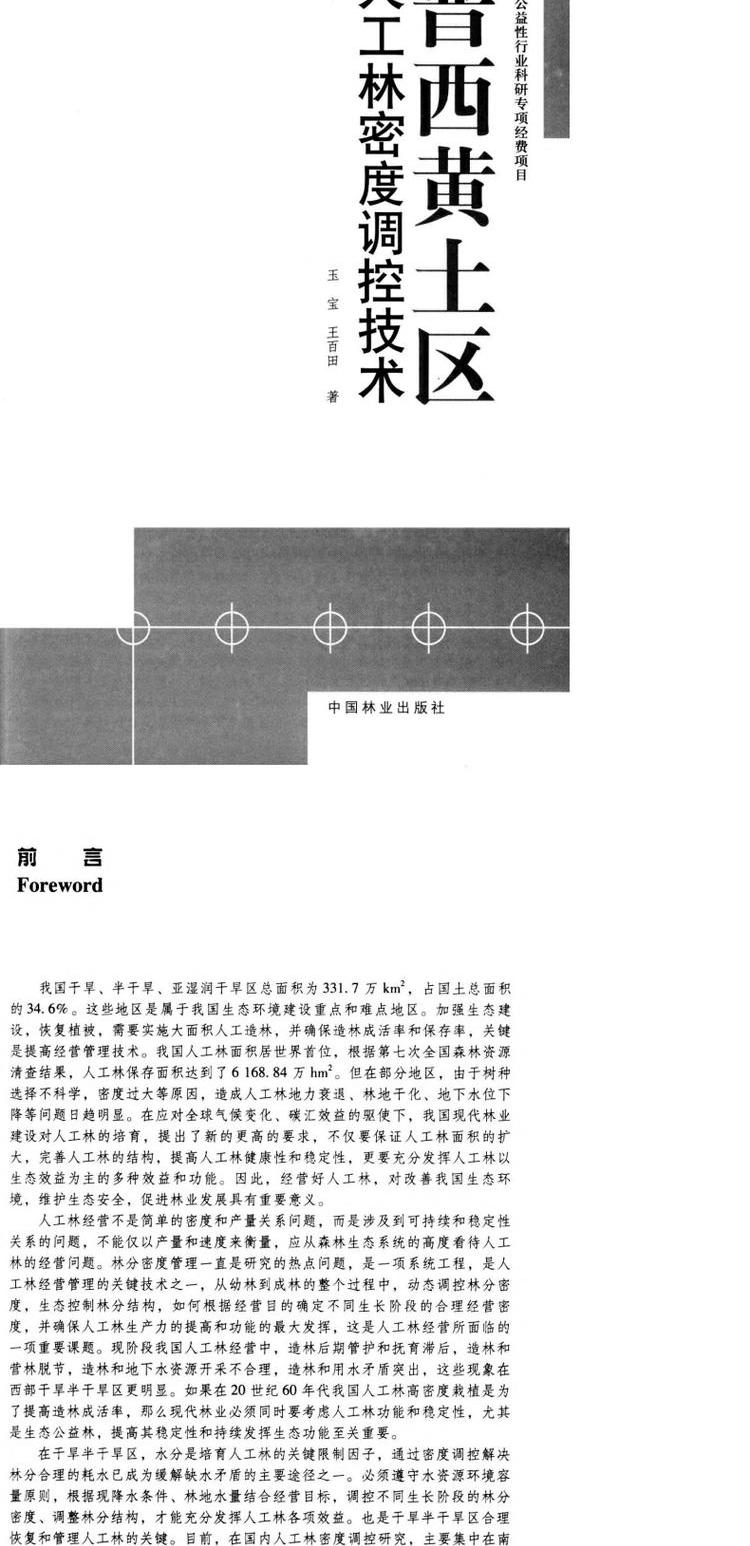 晋西黄土区人工林密度调控技术 中国林业出版社