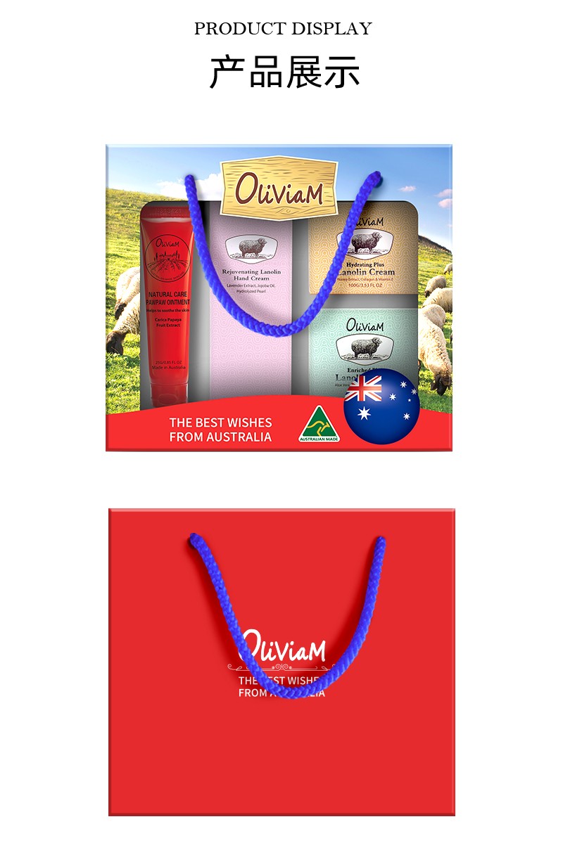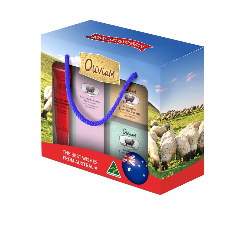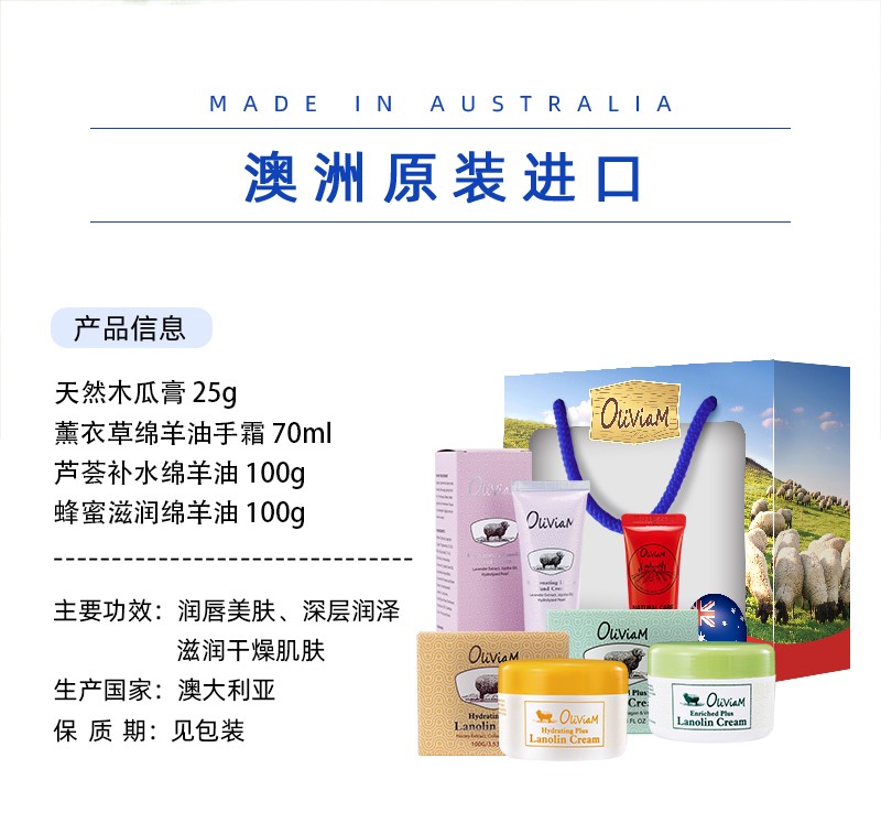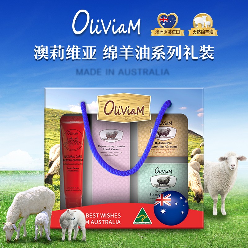 澳莉维亚羊油系列保湿滋润四件套礼盒【木瓜膏+手霜+绵羊油*2】
