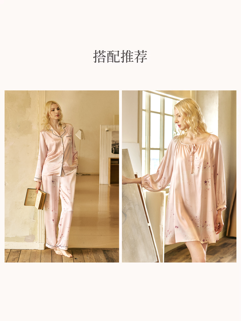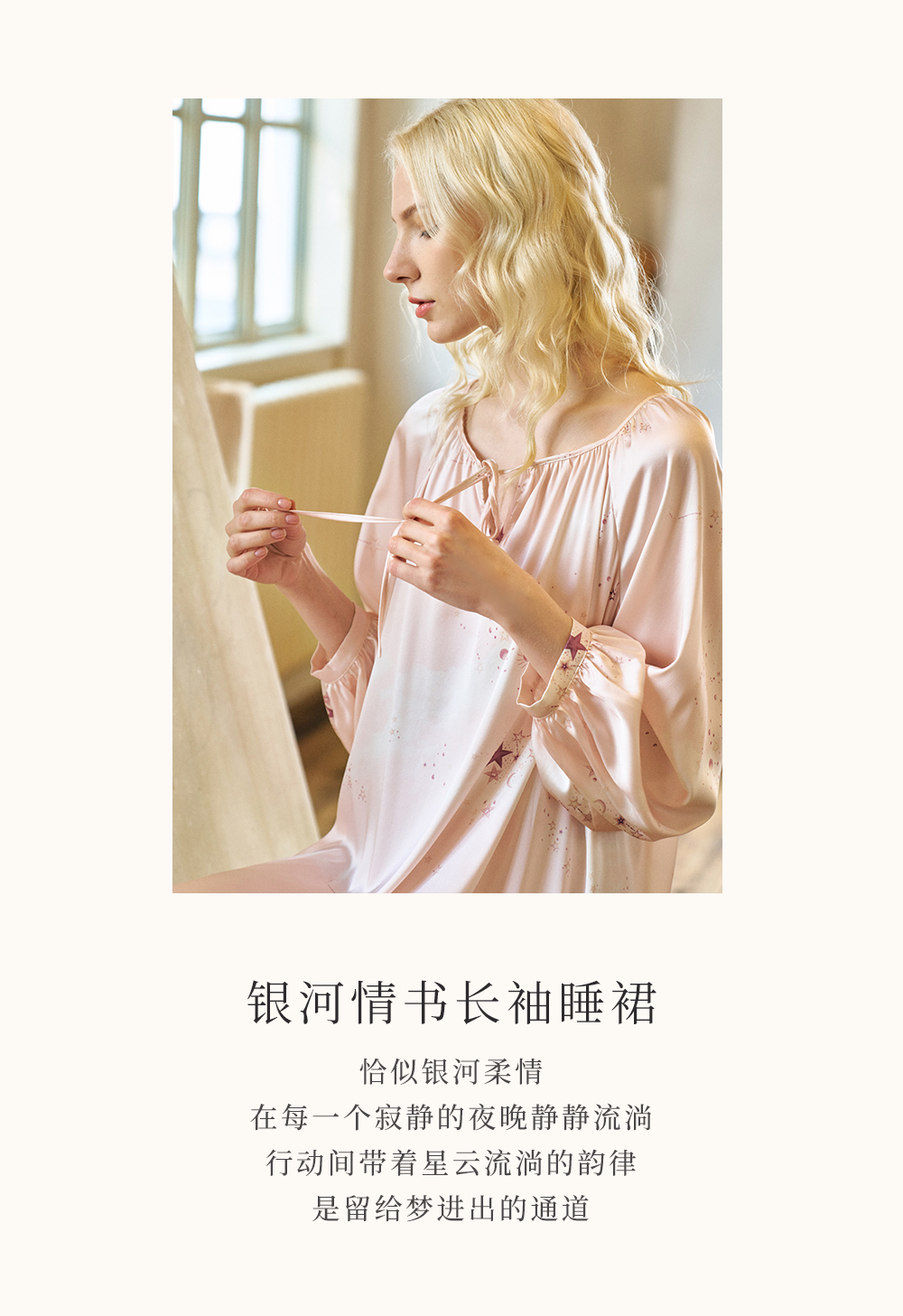Solo seta22姆米女士真丝睡裙桑蚕丝粉色印花长袖短裙2026家居服