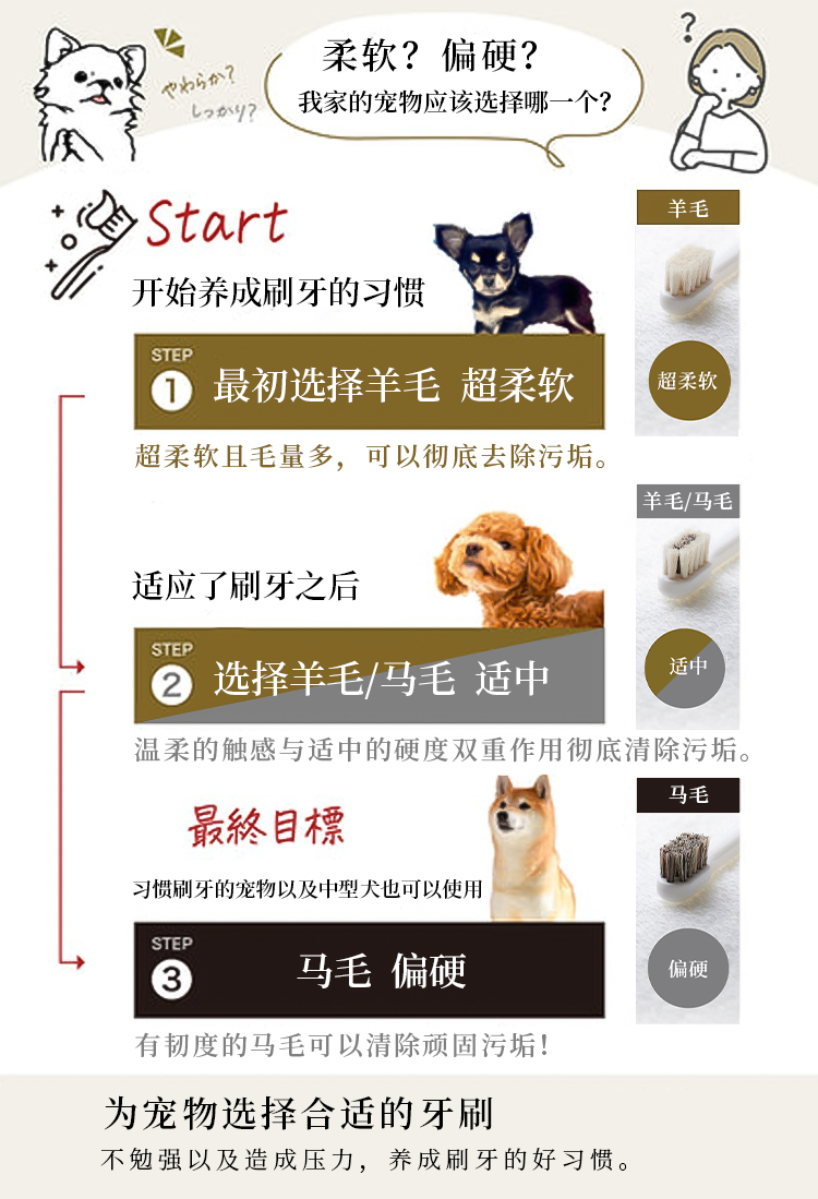 Migakende 猫咪小型犬用牙刷 天然马毛