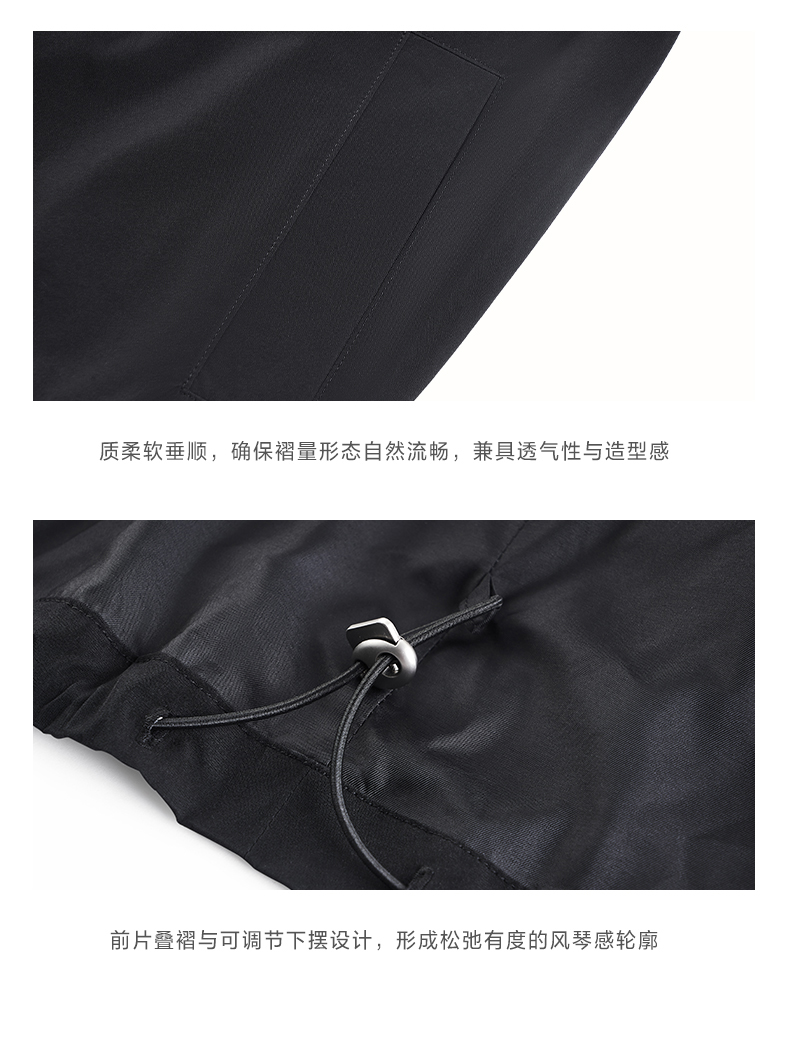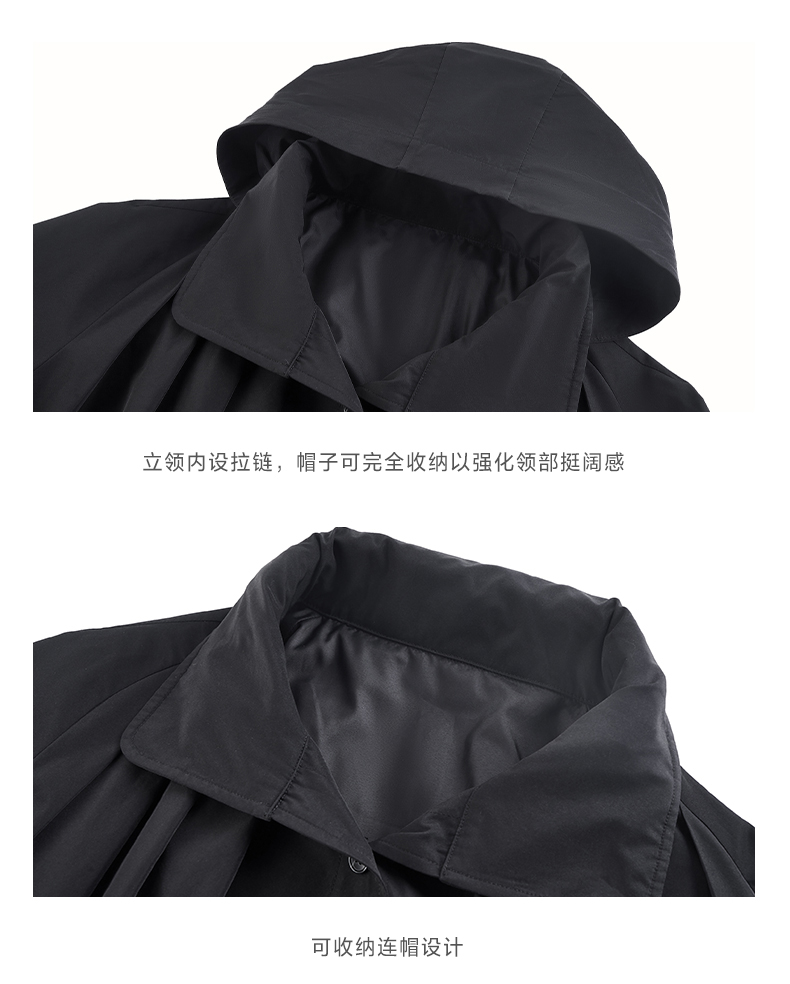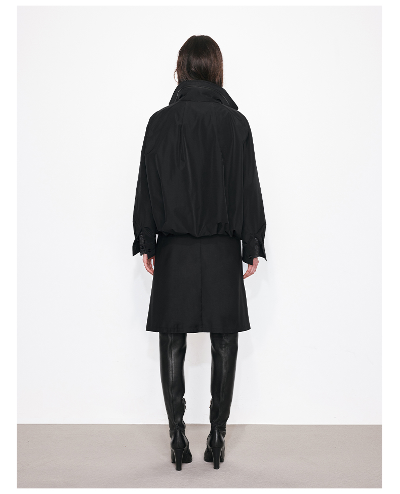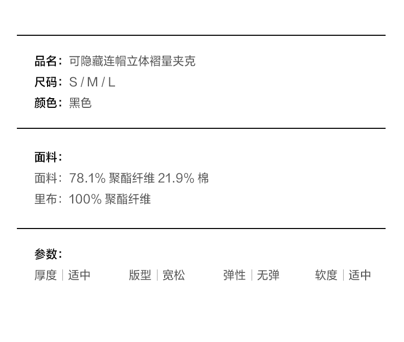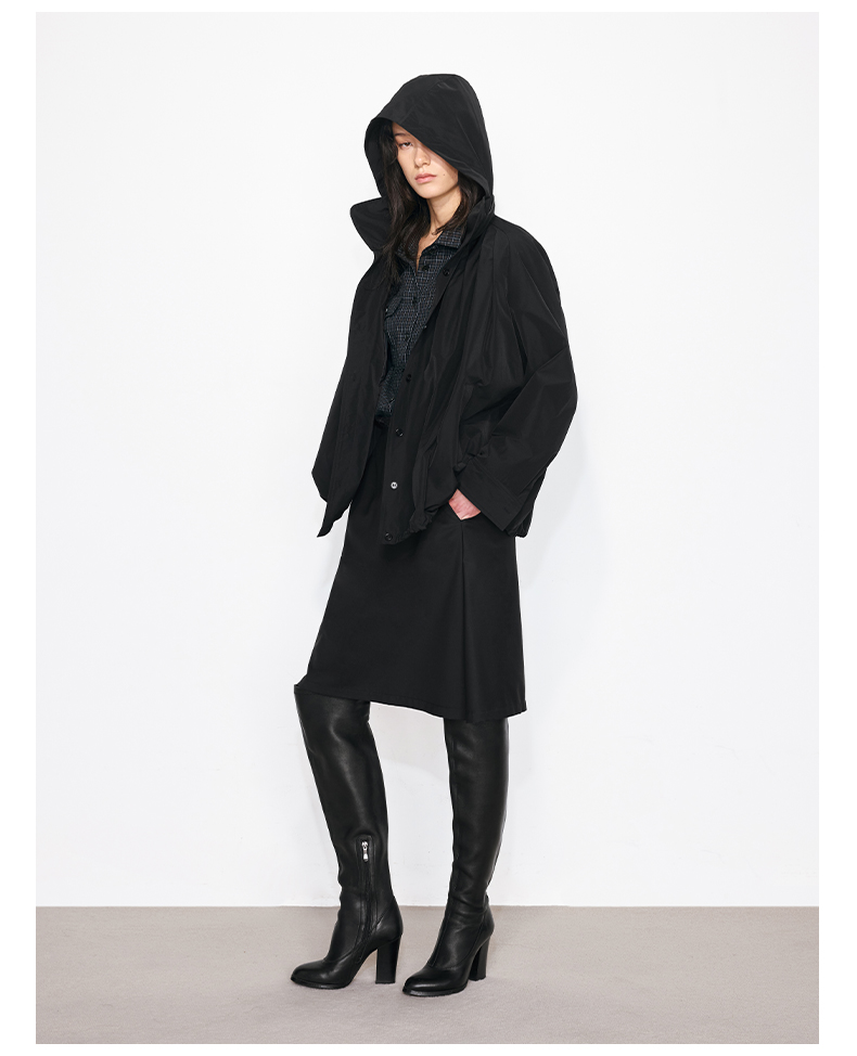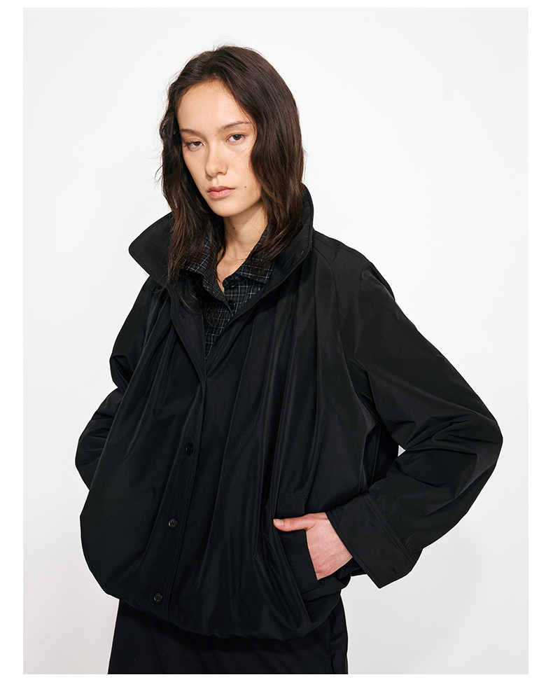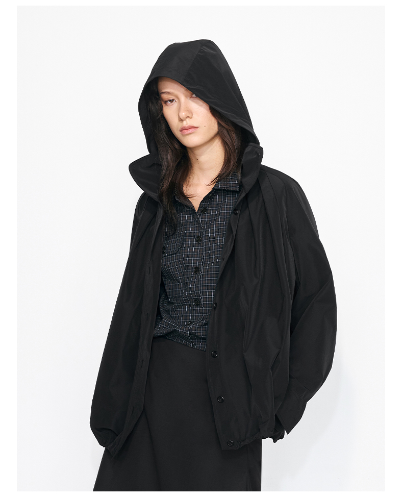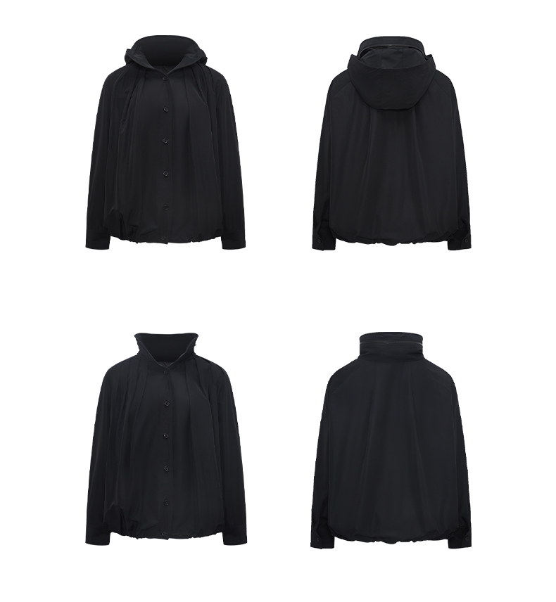 NUTH“立体褶量”黑色宽松可隐藏连帽夹克外套女