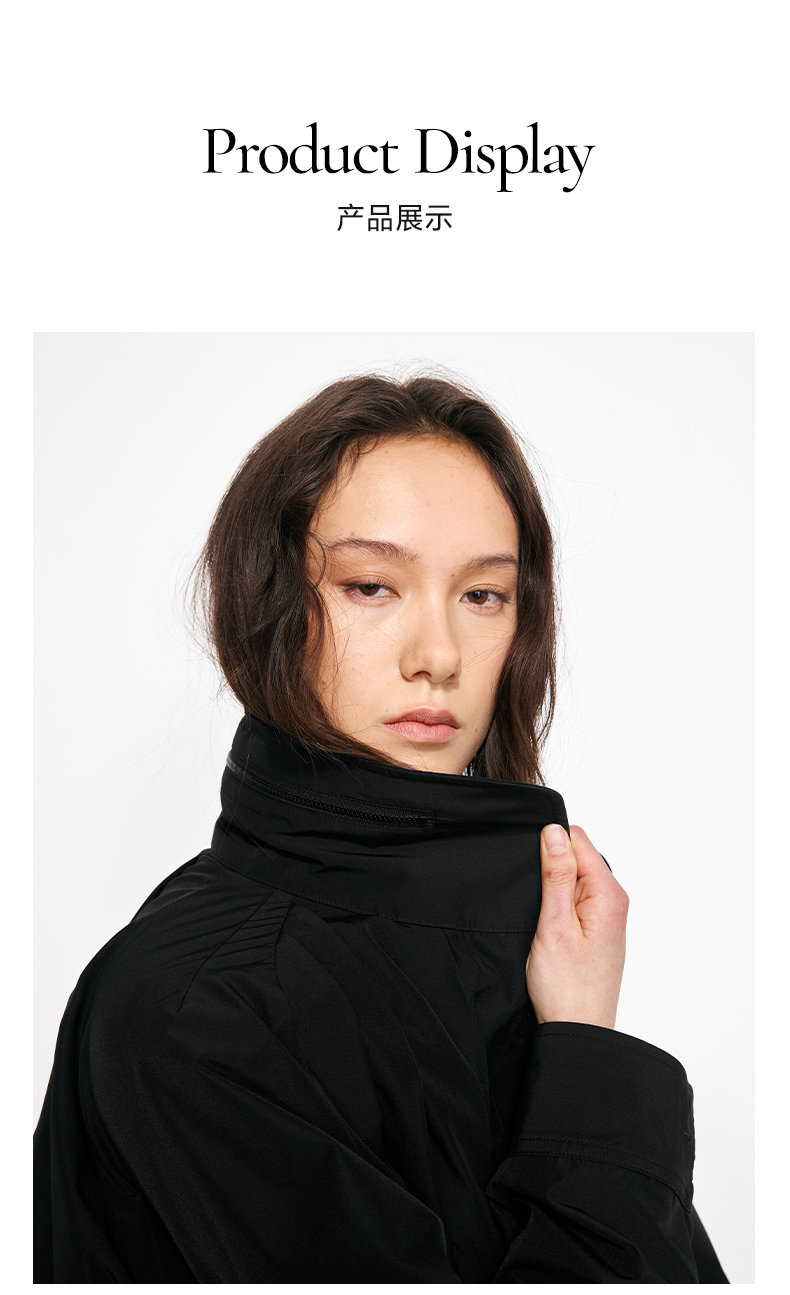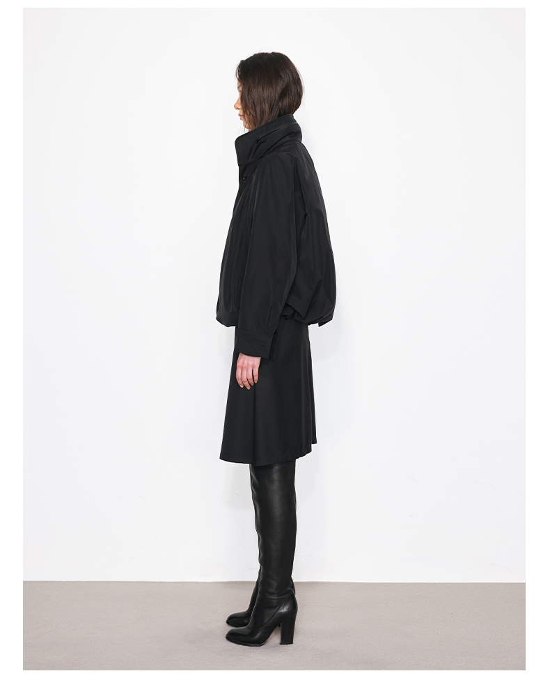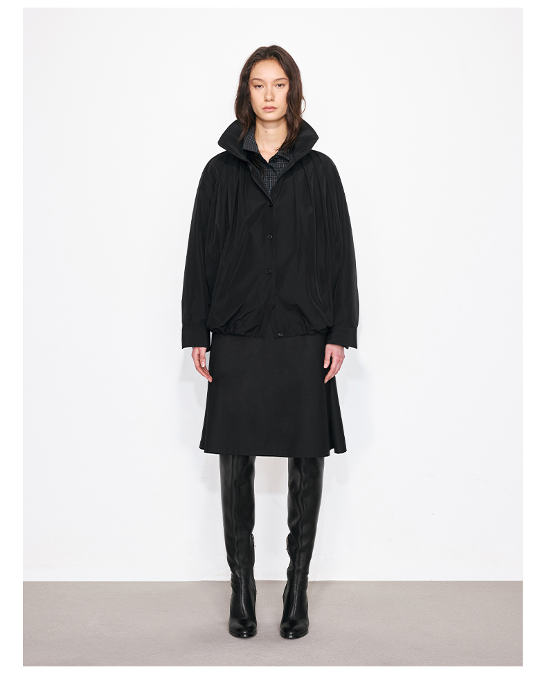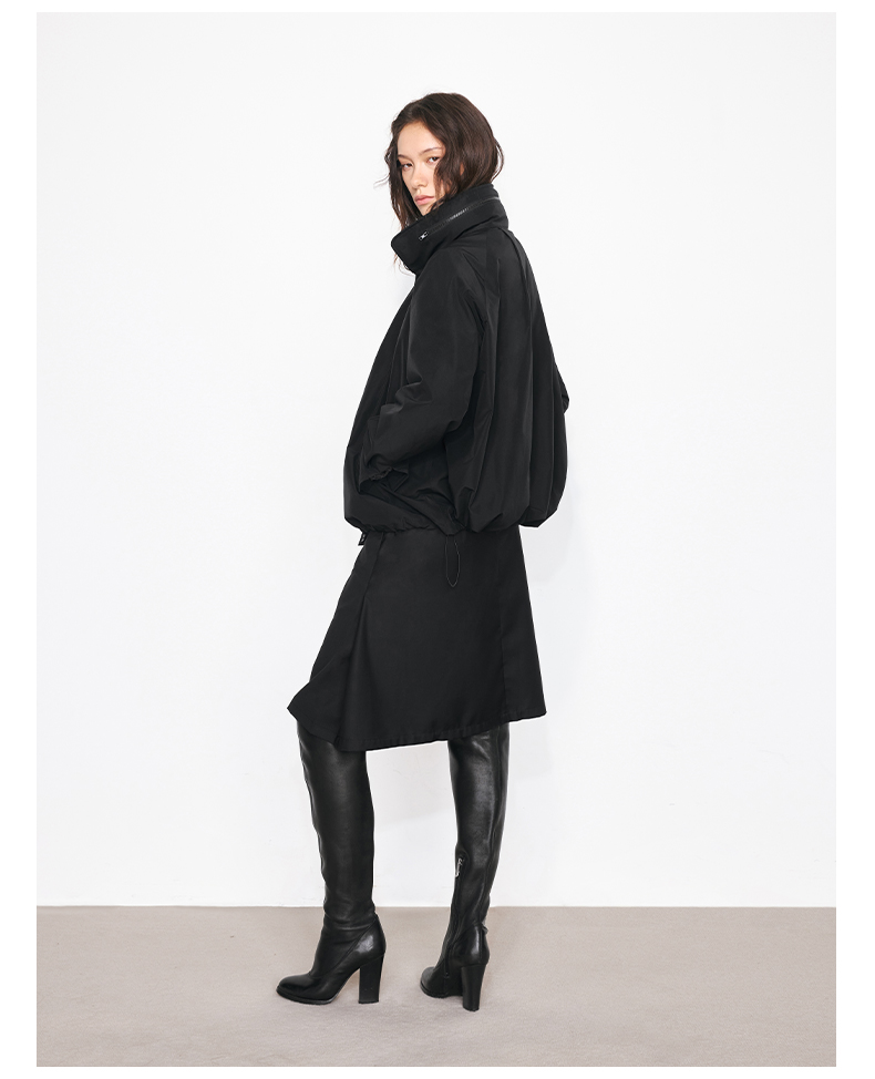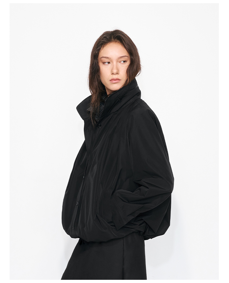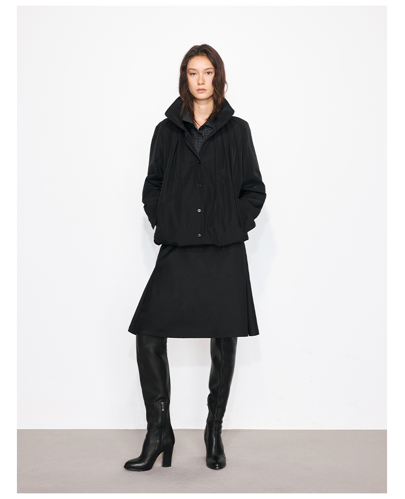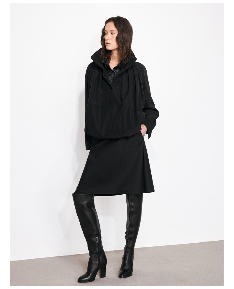 NUTH“立体褶量”黑色宽松可隐藏连帽夹克外套女