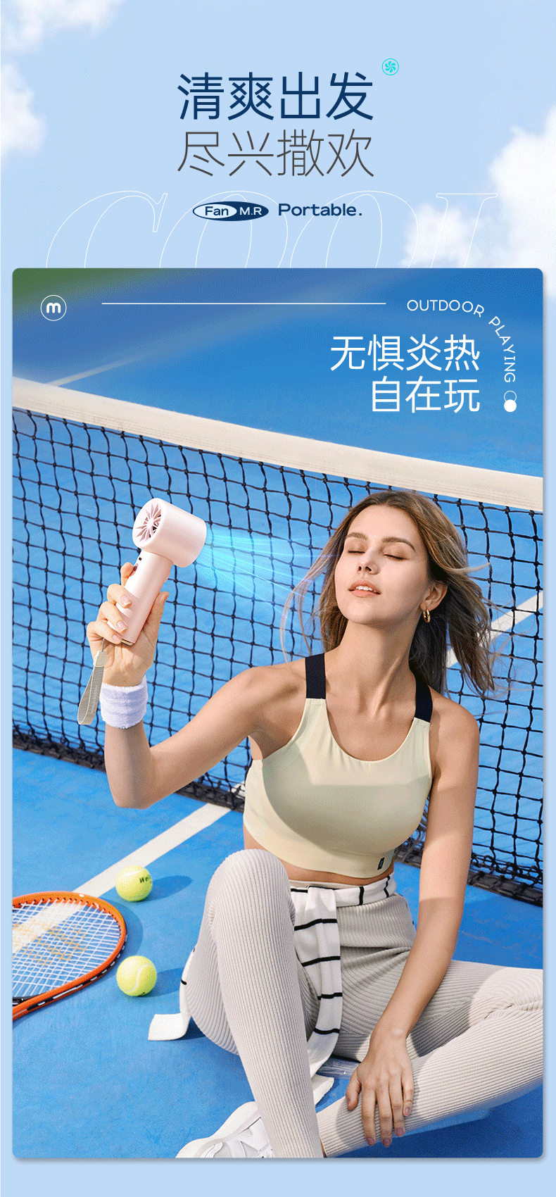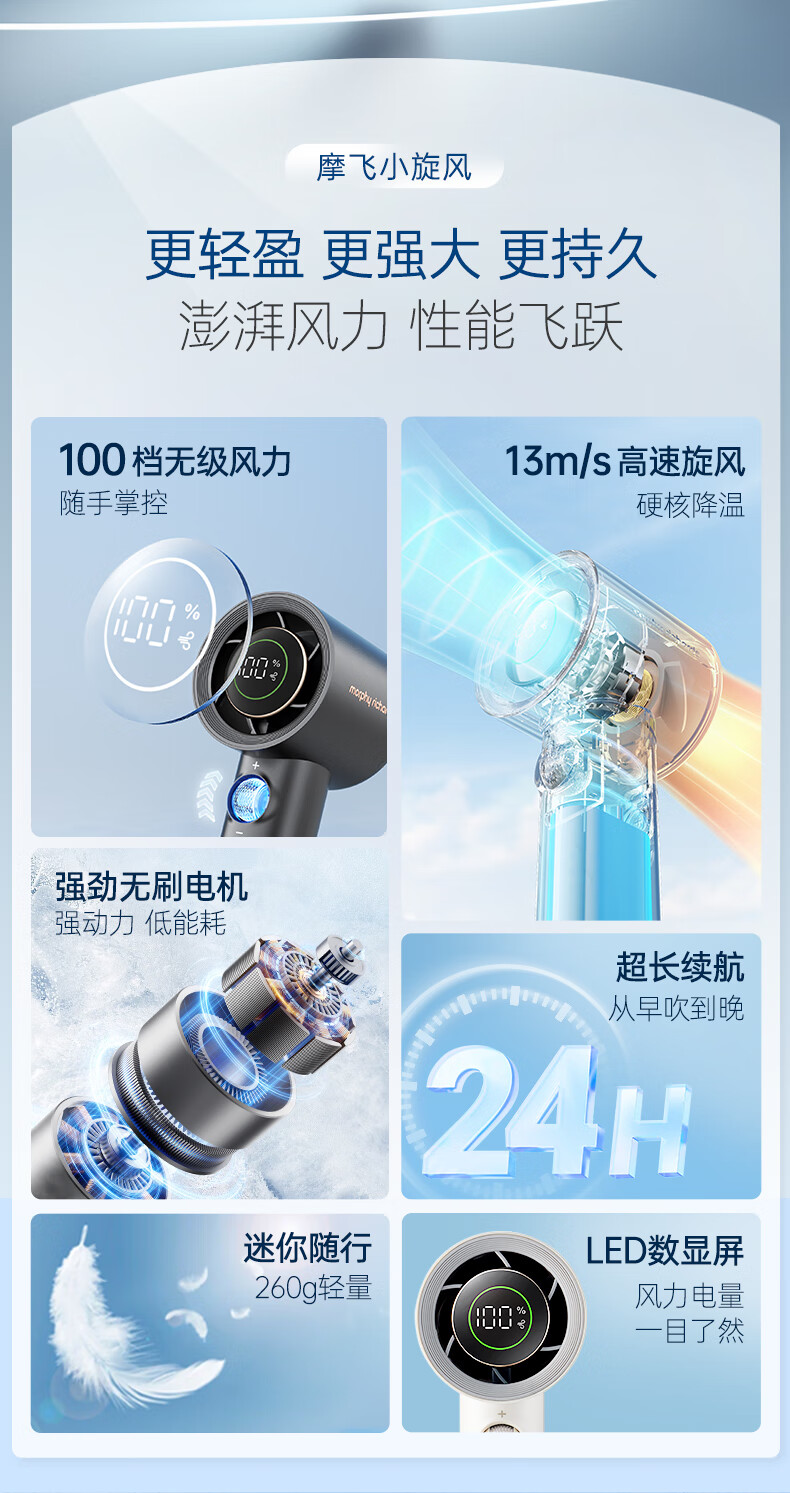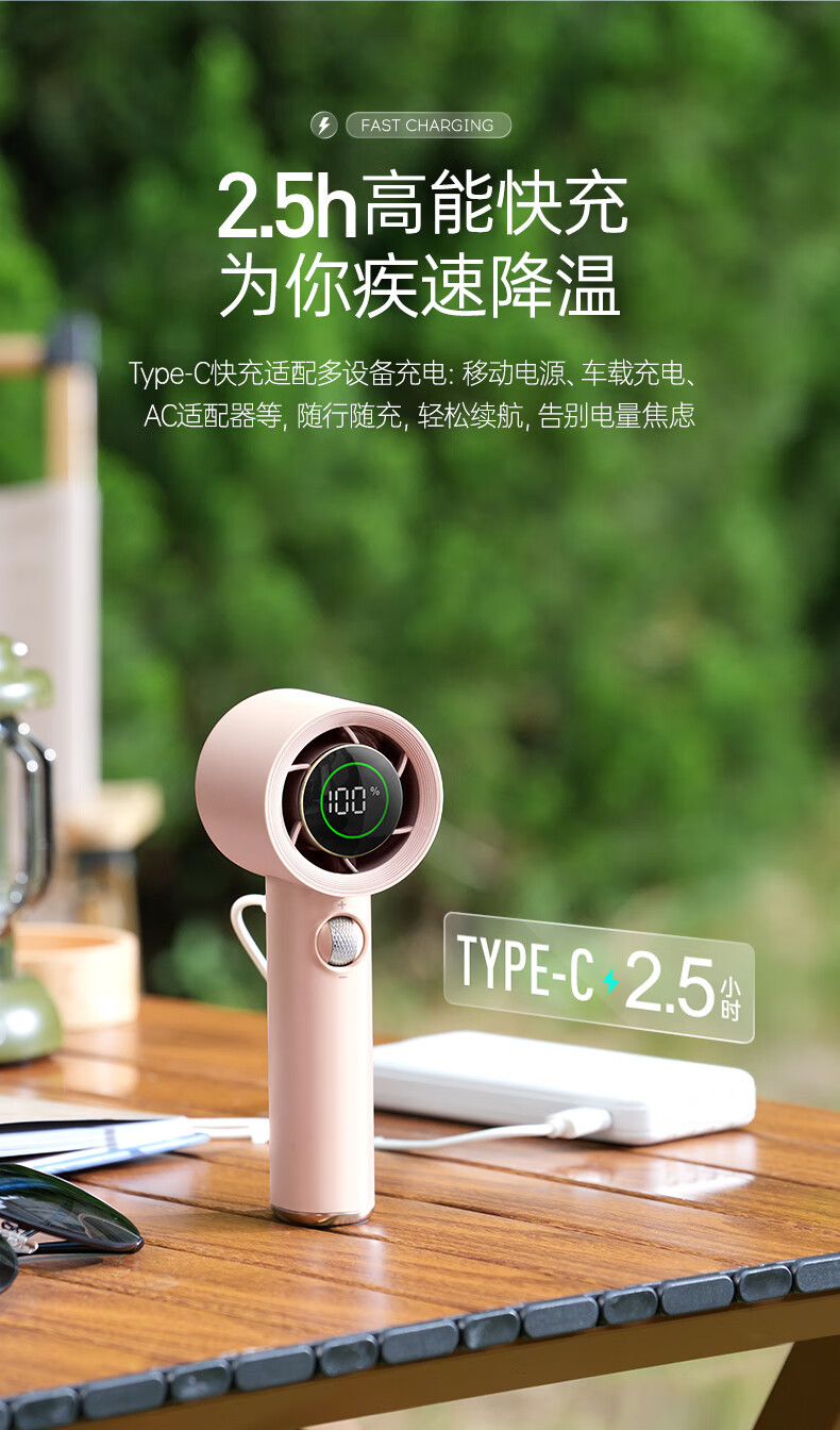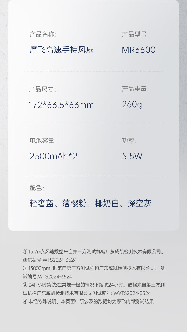 积分免费兑:摩飞电器(Morphyrichards)手持电风扇迷你便携式涡轮小风扇户外露营出行风宝100档风力智能变频长续航高速小风炮MR3600灰