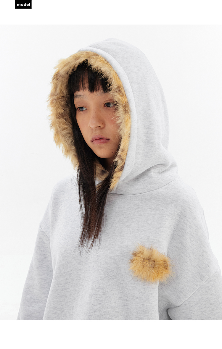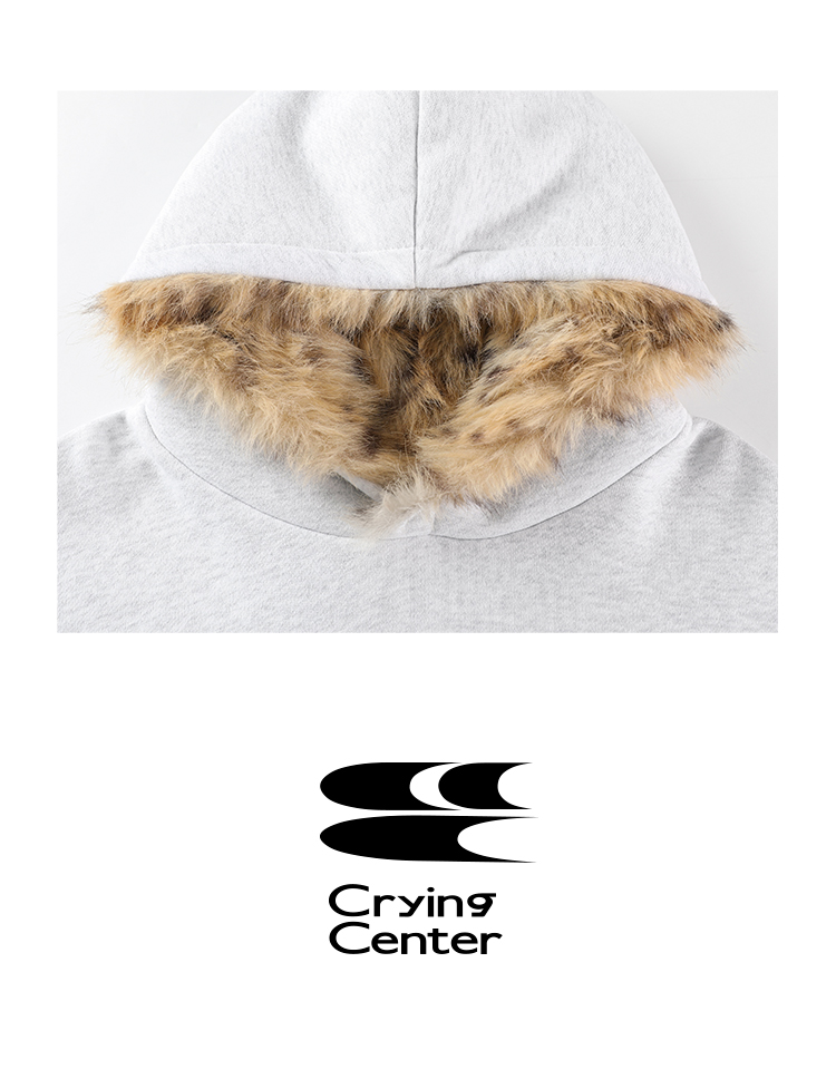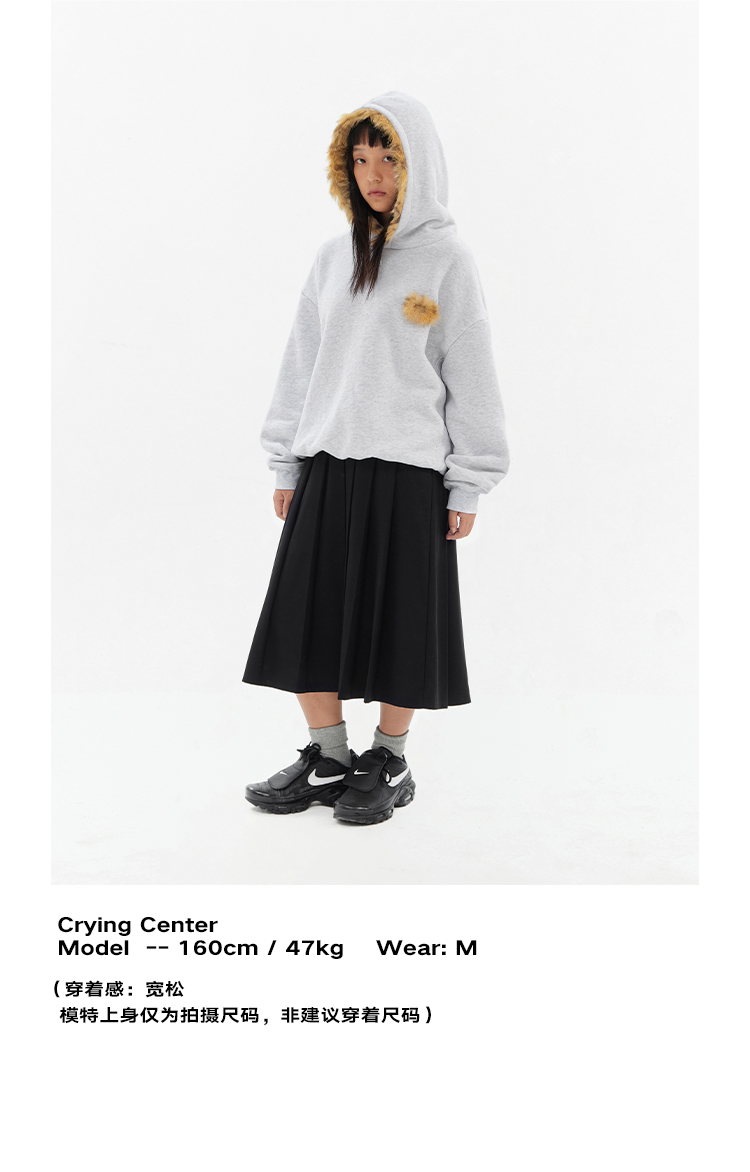 CryingCenter 可爱小鹿毛毛绒绒花灰色袋帽短版显瘦卫衣 哭喊中心