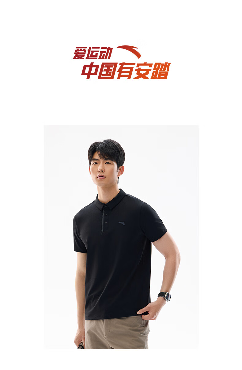安踏训练POLO衫男子2025年夏季新款翻领商务休闲短T袖152527101