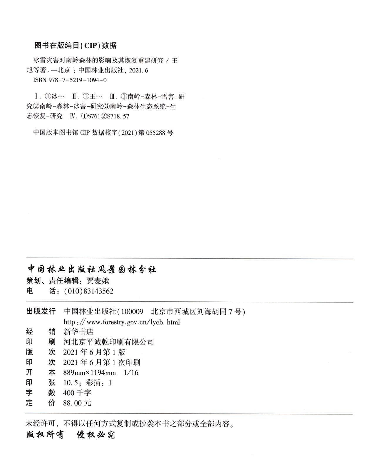 冰雪灾害对南岭森林的影响及其恢复重建研究 1094 王旭//吴仲民 中国林业出版社