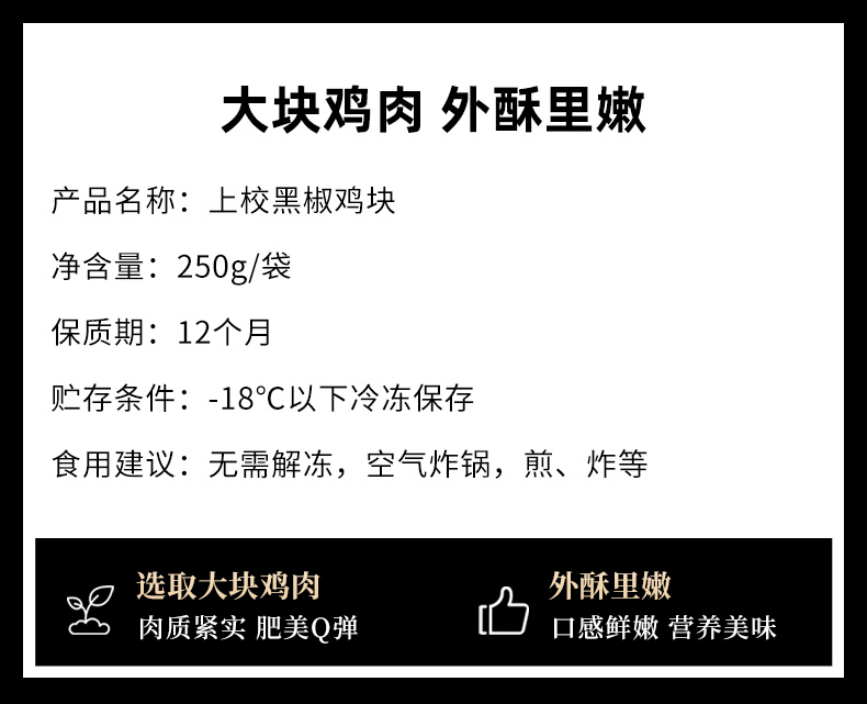 【北海湾】上校黑椒鸡块250g*7袋外酥里嫩煎炸空气炸锅方便速食