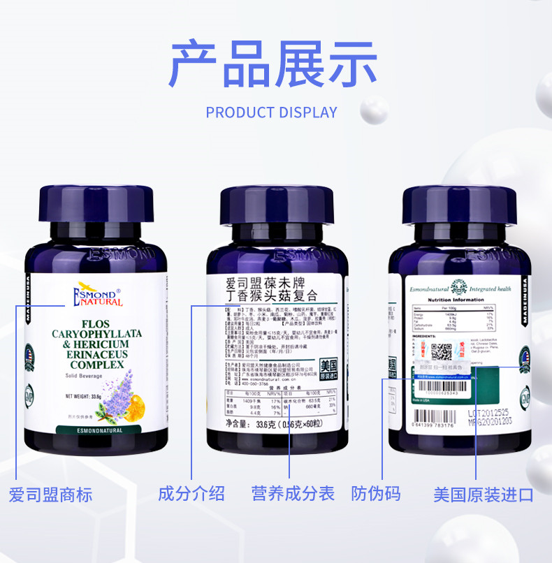 Esmond Natural爱司盟 葆未牌丁香猴头菇复合胶囊 60粒