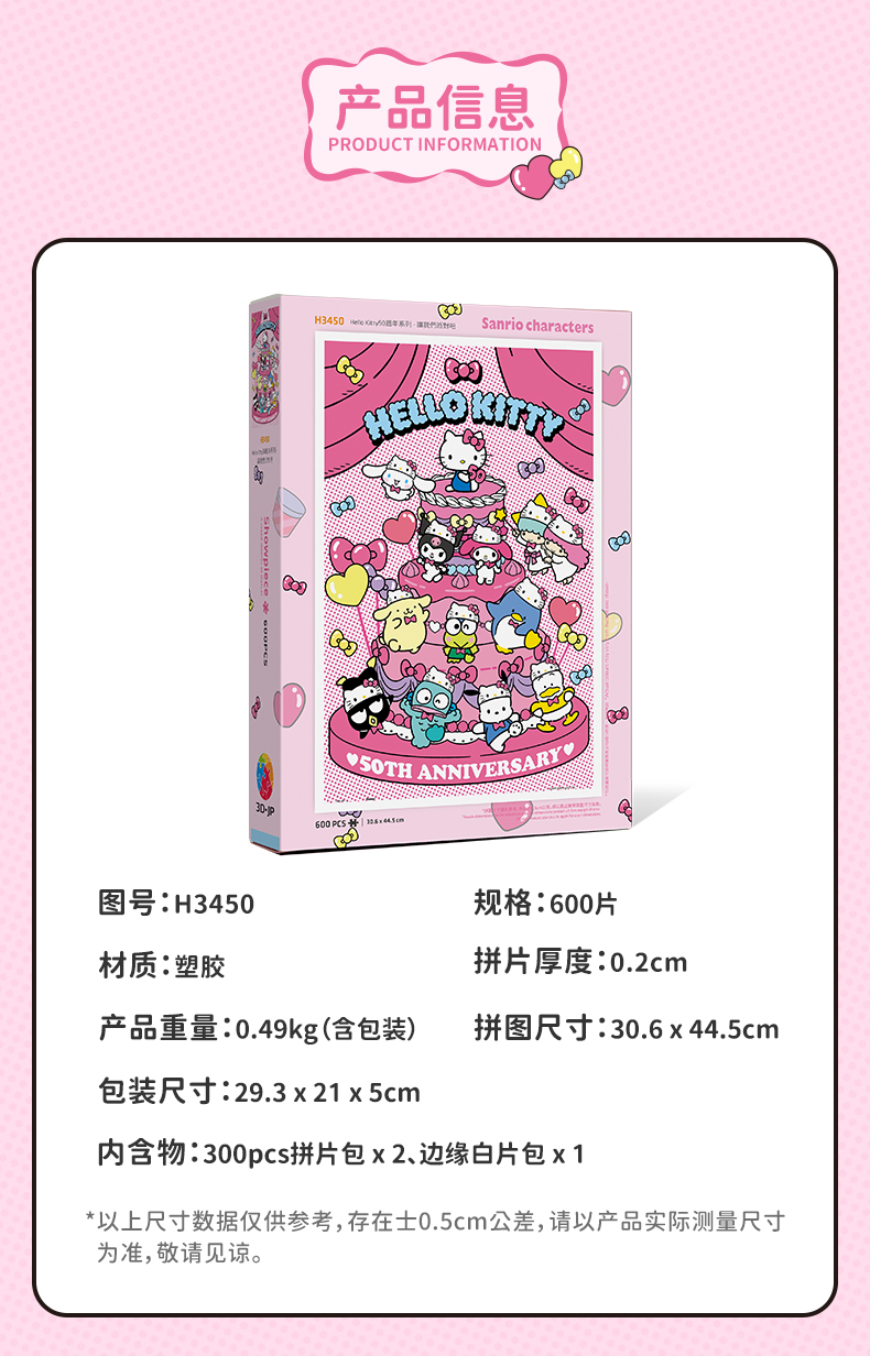600片 平面塑料拼图 H3450 Hello Kitty50周年系列-让我们派对吧