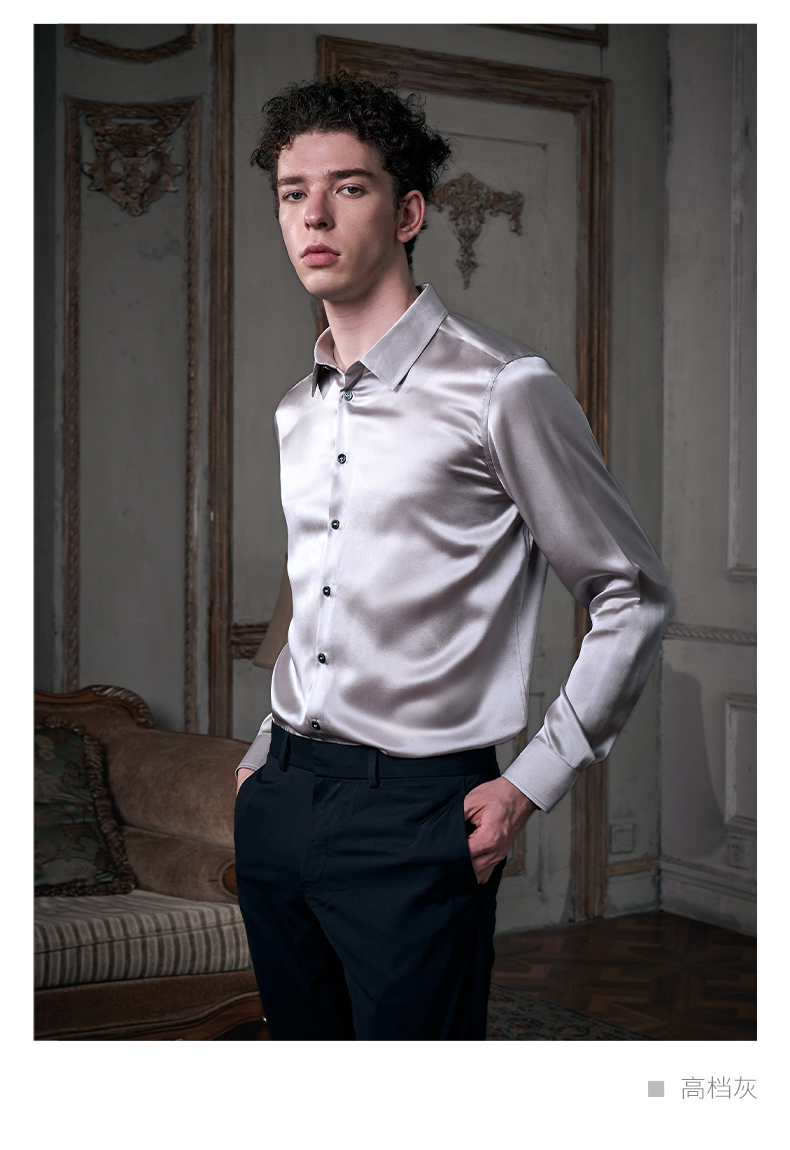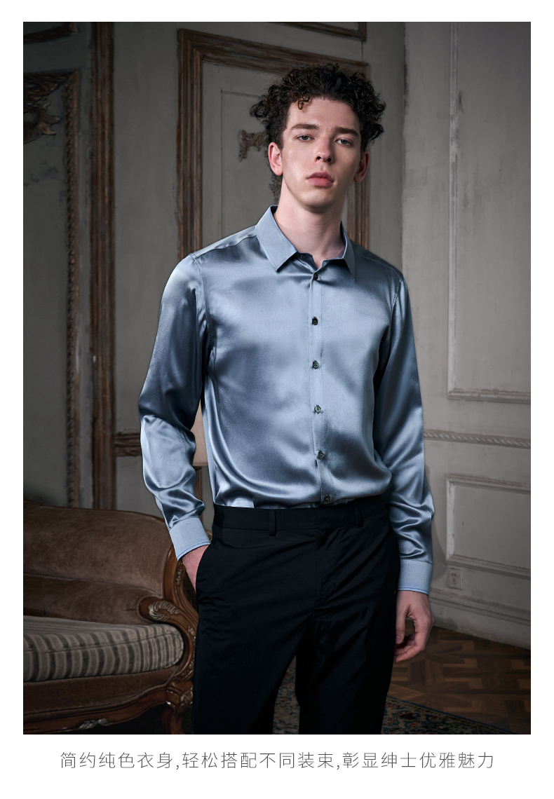 Soloseta25姆米重磅真丝衬衫长袖男2025新款可外穿情人节礼物