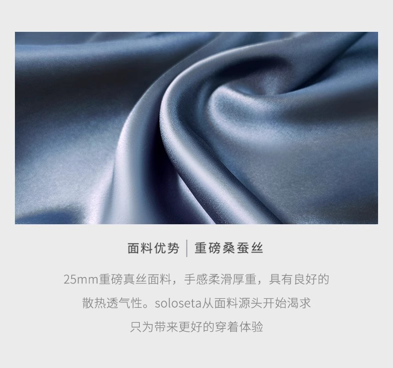 - soloseta专注于真丝织物,灵感源自意大利语,中文含义为“只做真丝”的意思。让睡衣变时尚,居家和外出瞬间切换,使其更具有出街,度假,参加宴会等功能。