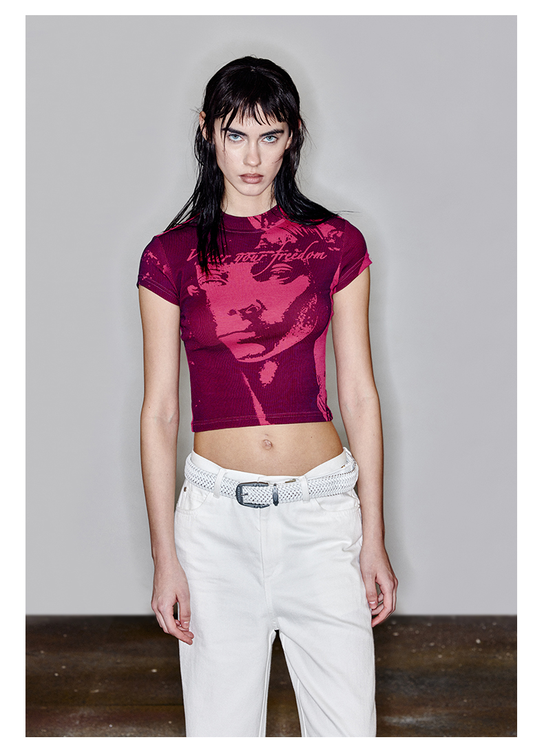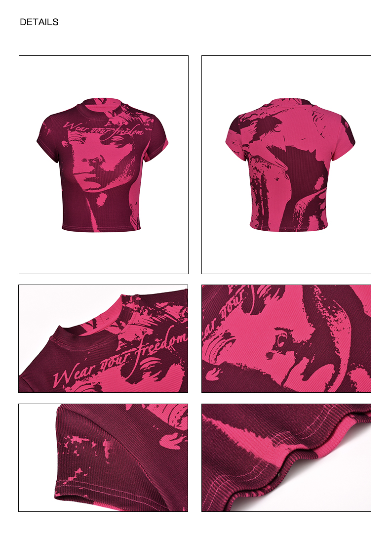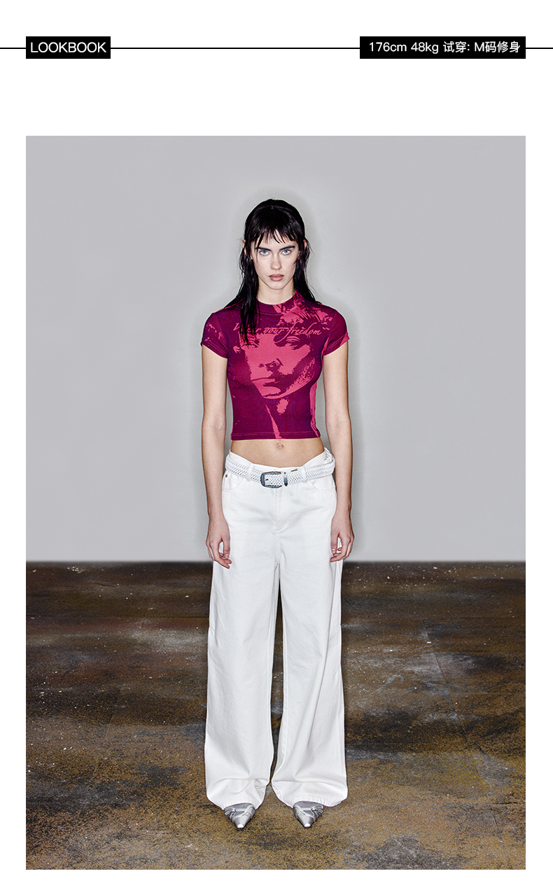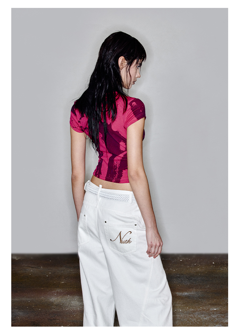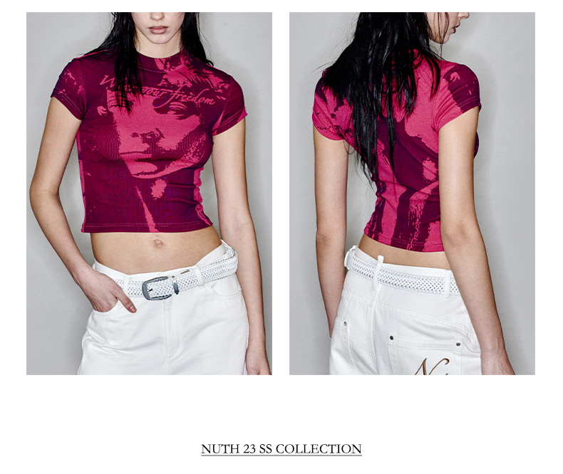 NUTH“凝视”|复古印花T恤女夏季修身短款辣妹上衣