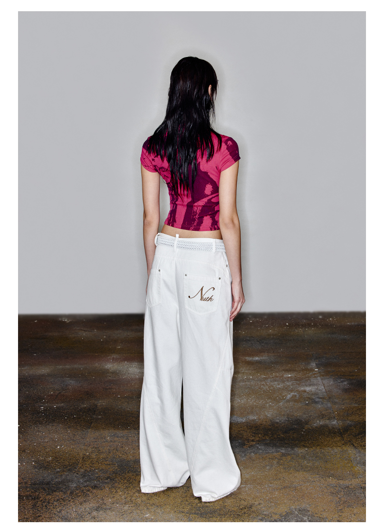 NUTH纯棉慵懒宽松阔腿抽绳休闲裤女 白色/藏蓝色