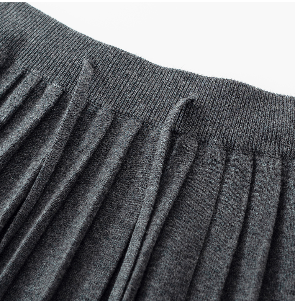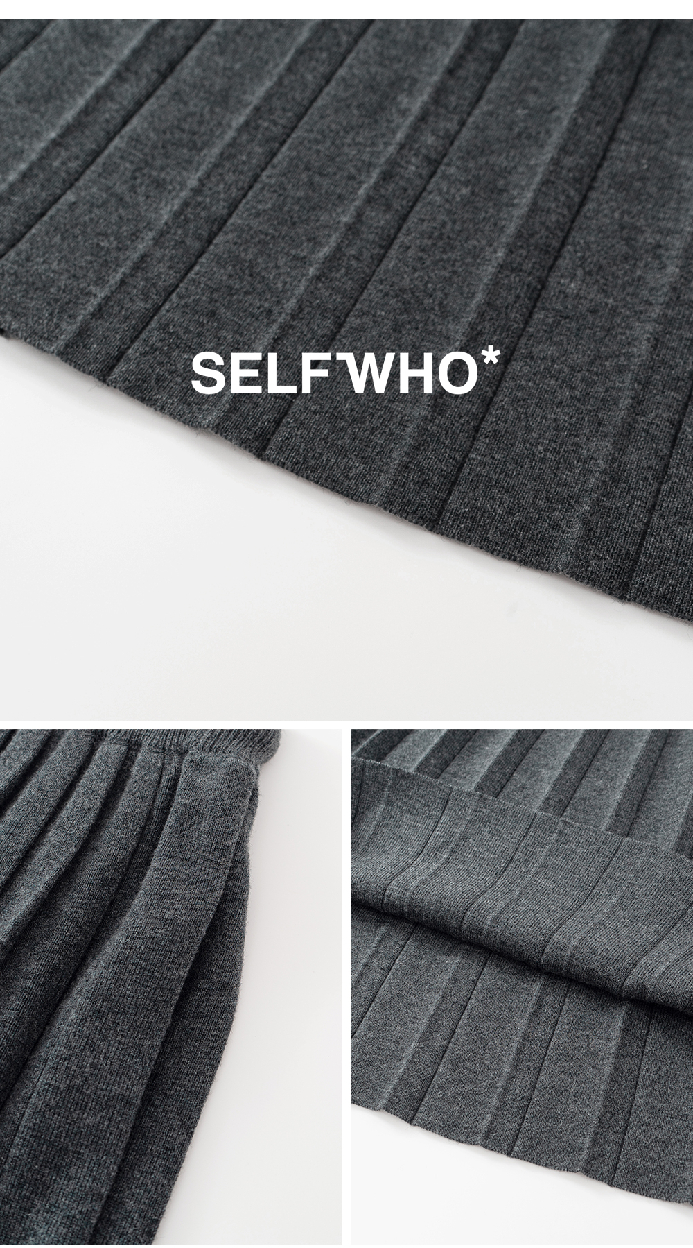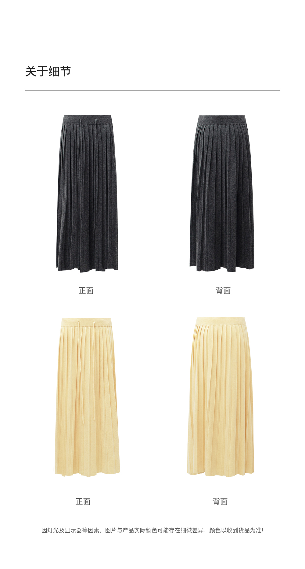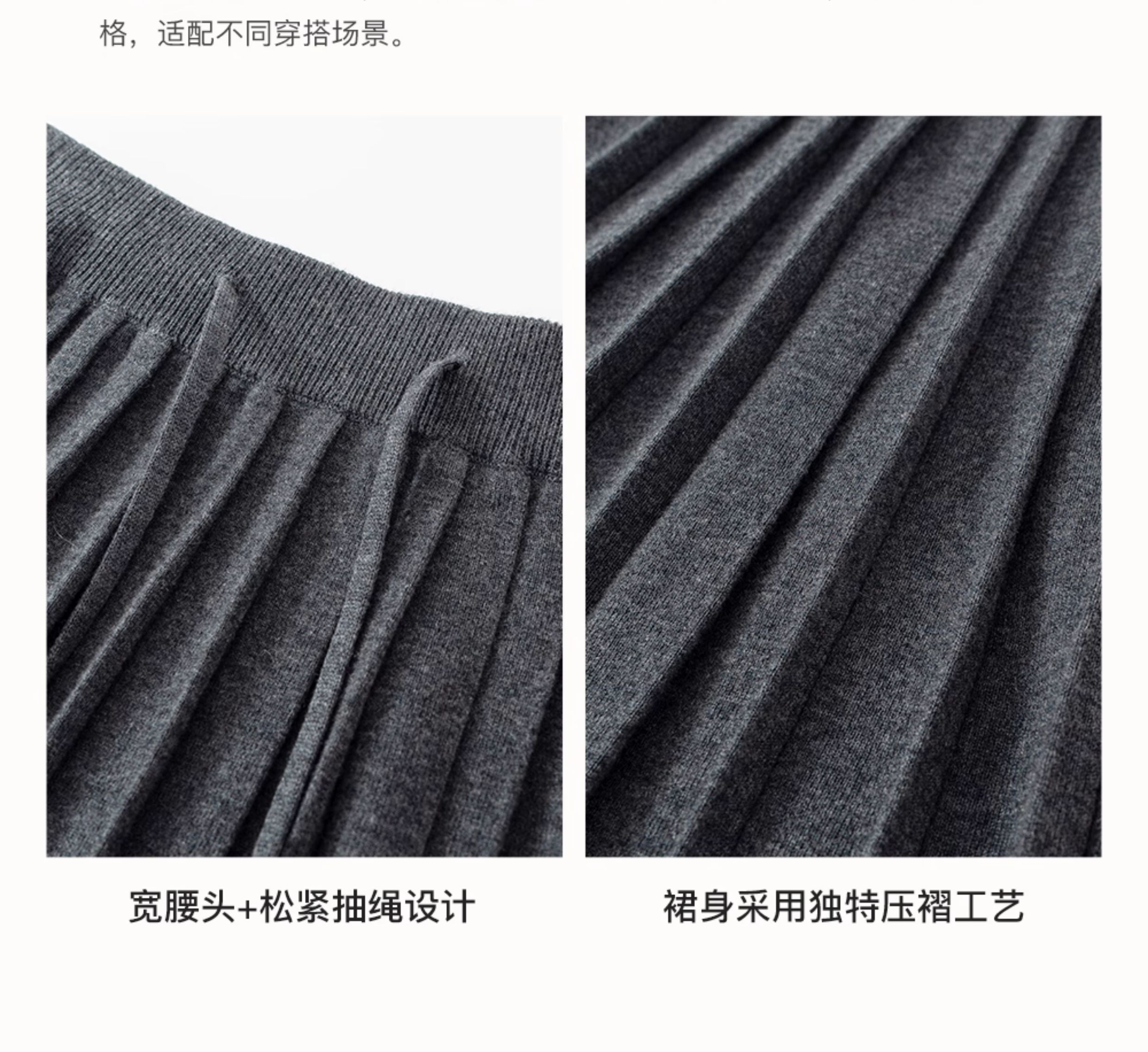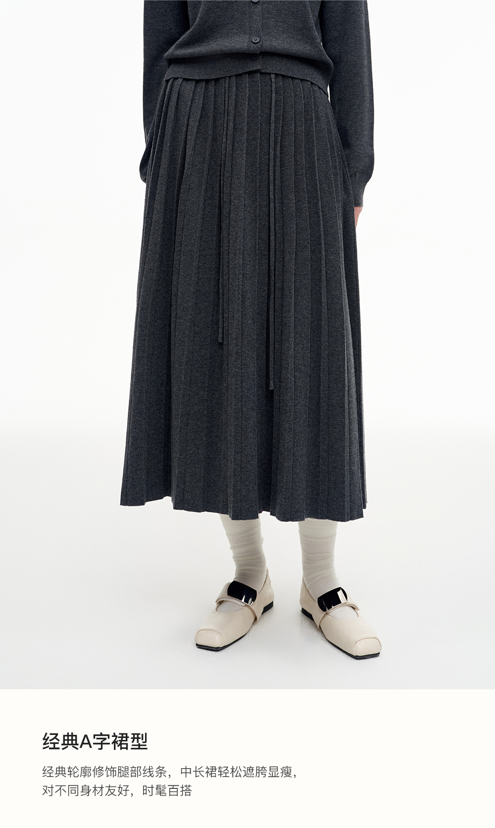 SELFWHO绵羊毛混纺松紧抽绳A字半身裙女2025秋新款垂感压褶百褶裙