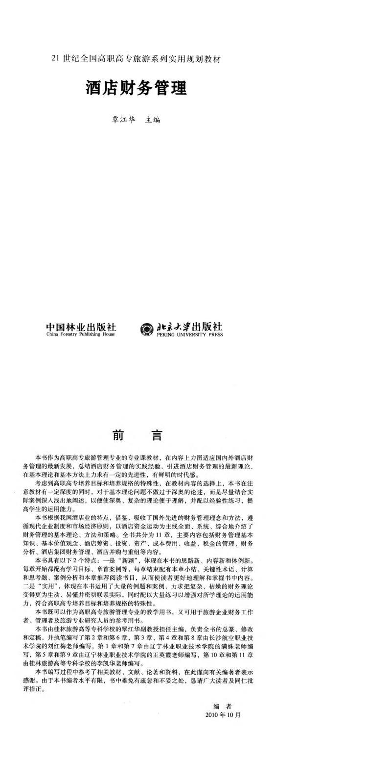 酒店财务管理6211 21世纪全国高职高专旅游系列实用规划教材 中国林业出版社教材 教材