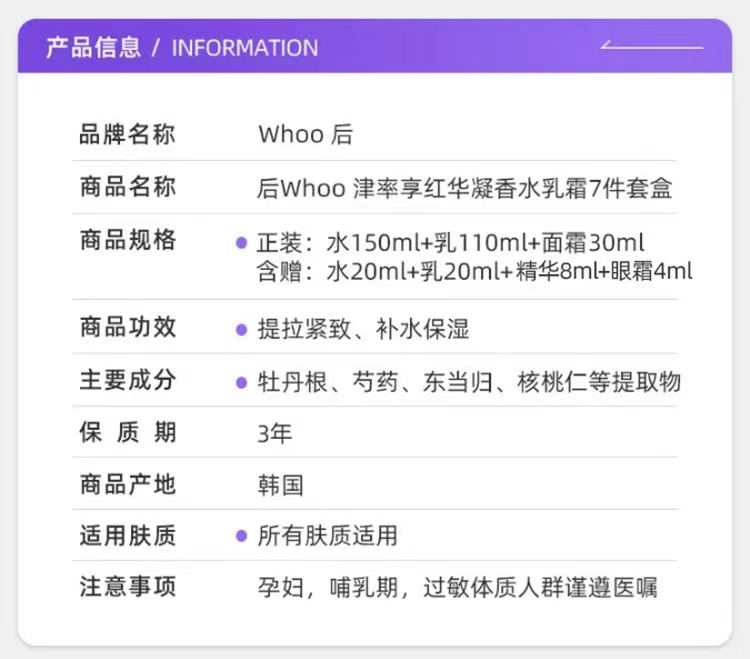 whoo后津率享套盒七件套天气丹护肤品套装