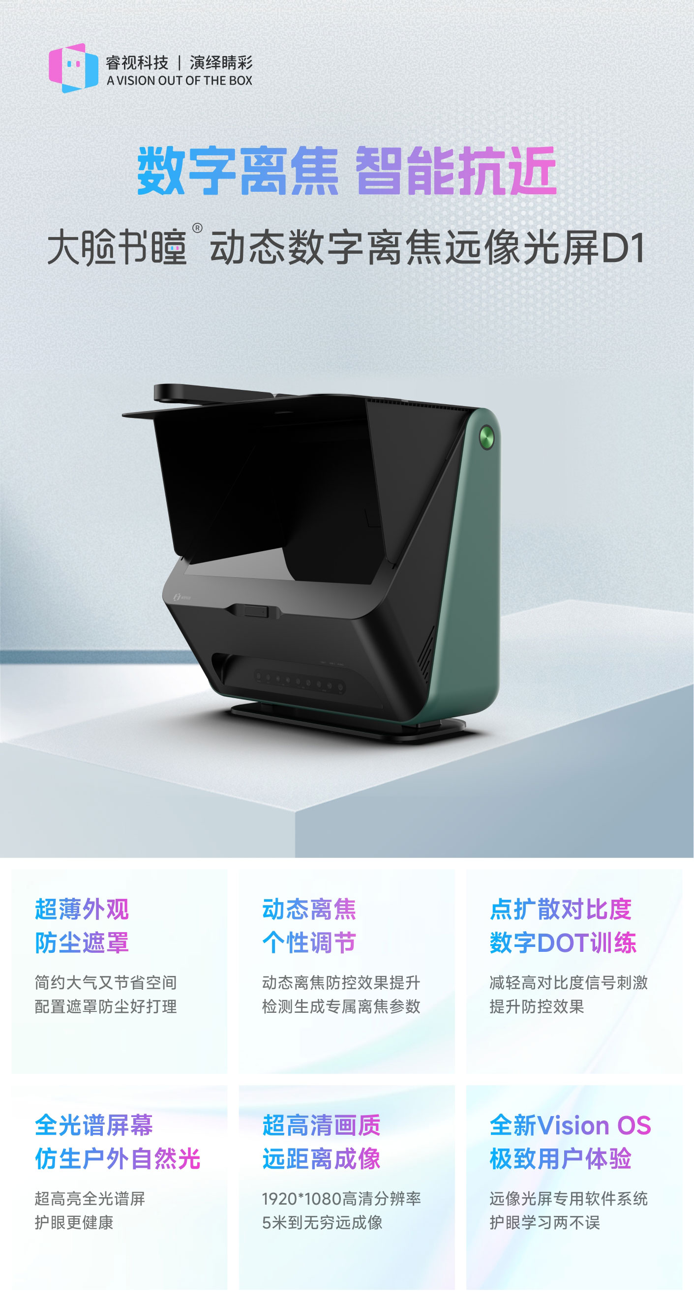 大脸书瞳 新款D1雾视屏睿视动态数字离焦远像光屏远望屏4L近视护眼望远屏拉远视力训练智慧护眼学习机 赵阳主任推荐
