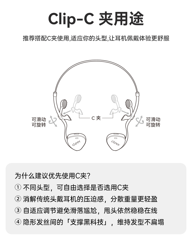 Cleer Clip时尚版 开放式头戴AI蓝牙耳机高颜值 空间音频杜比