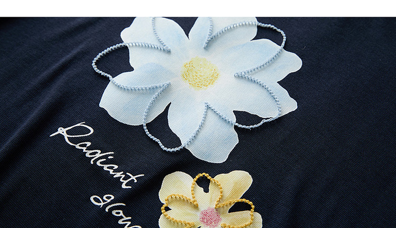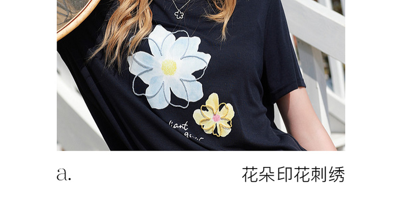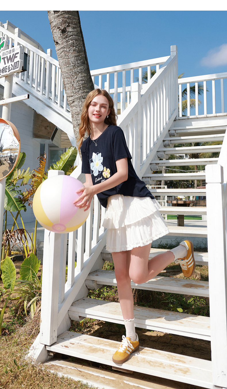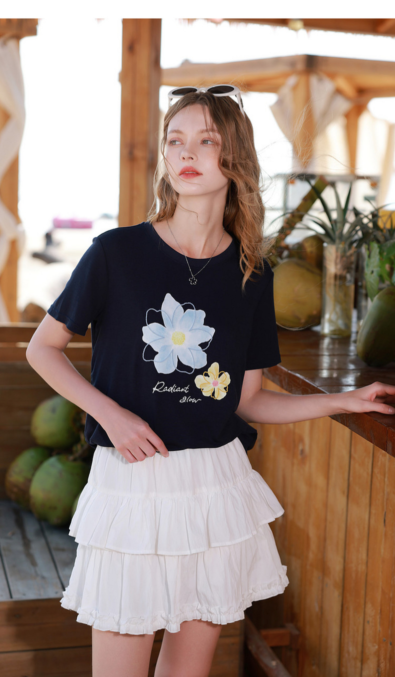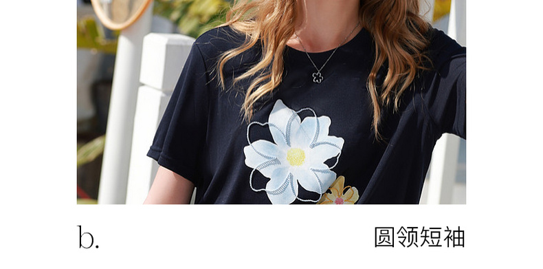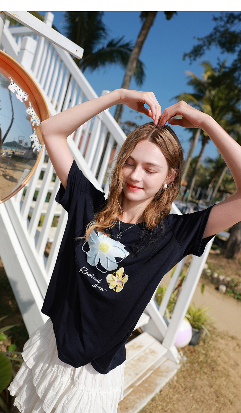 【莱赛尔】三彩2026夏季新款休闲花朵印花T恤圆领短袖套头衫上衣M