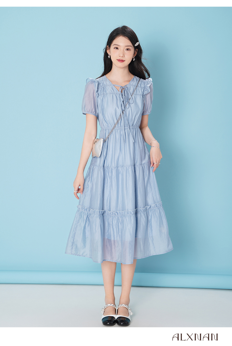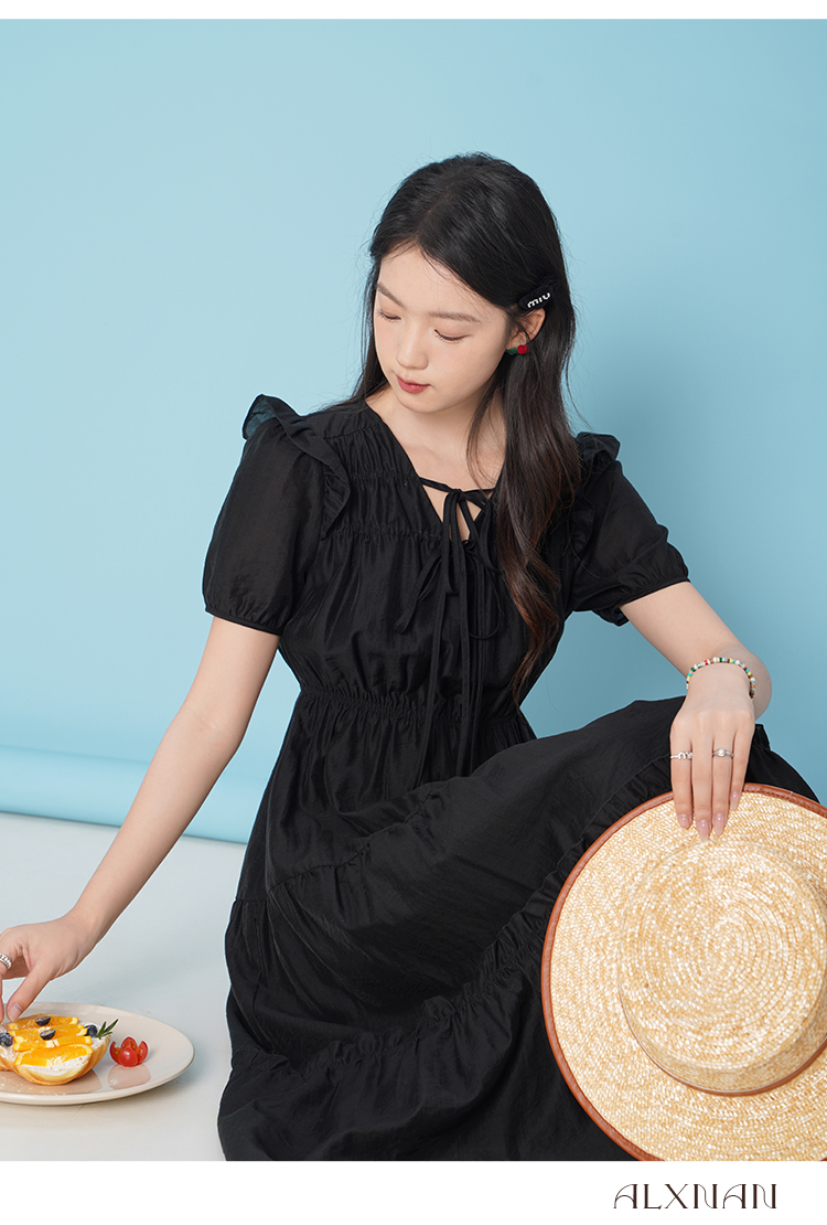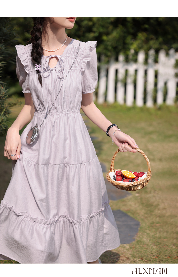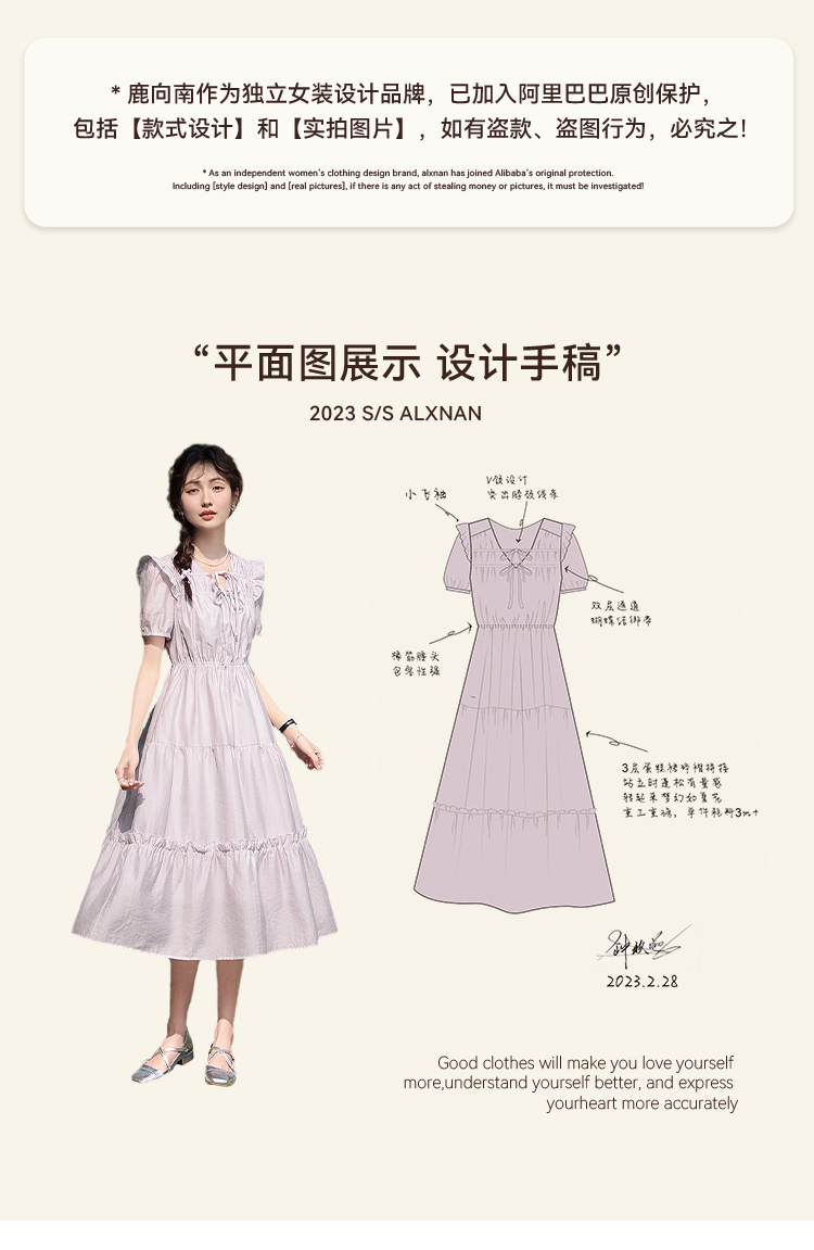 【65折秒杀】鹿向南《温柔宇宙》法式夏季短袖连衣裙新款气质高腰裙子女LXN29270