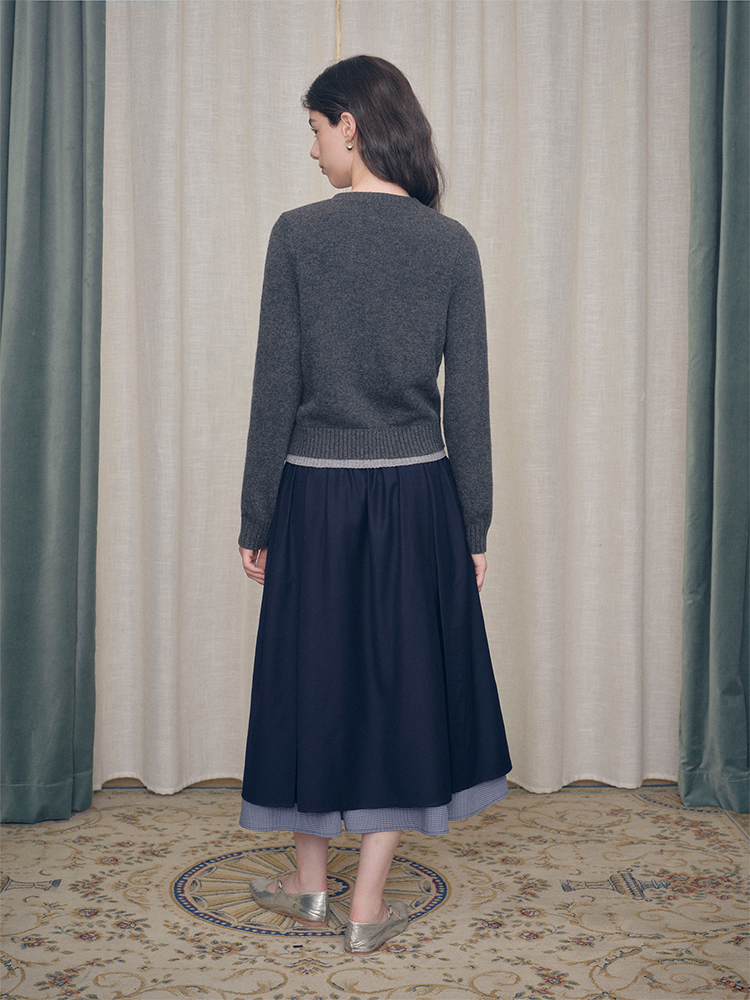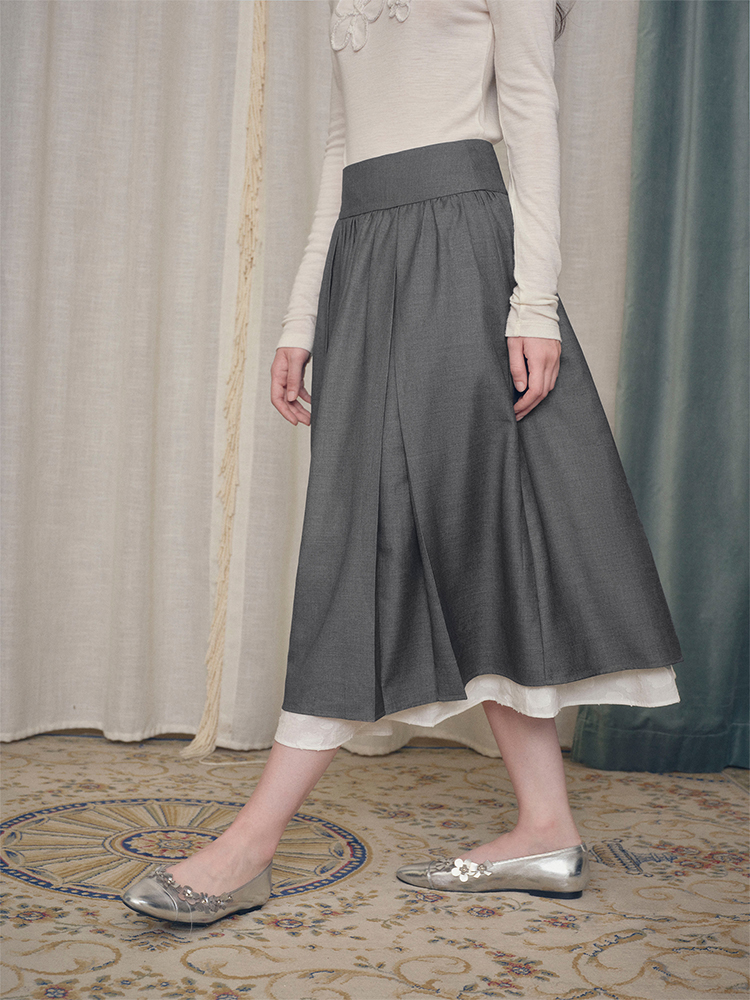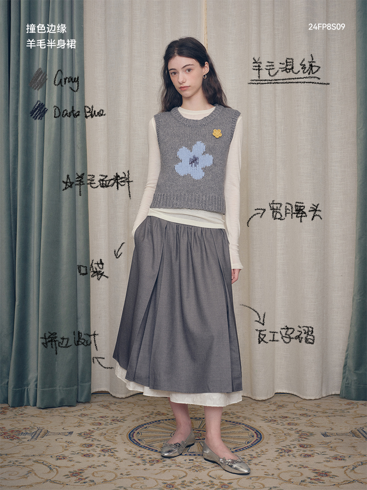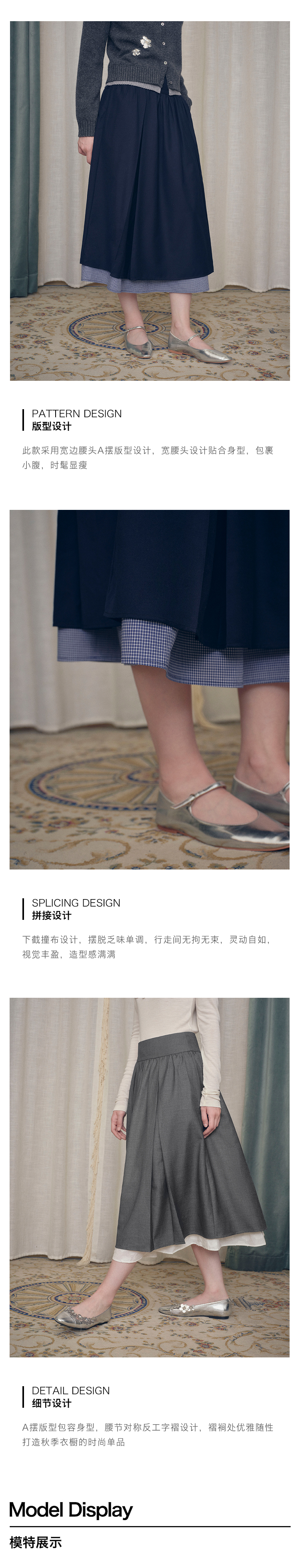 ForPoem 现货 24/FW原创设计撞色边精纺羊毛A字中长半裙