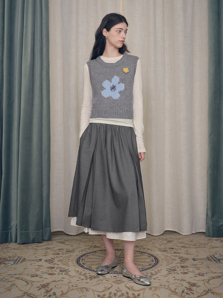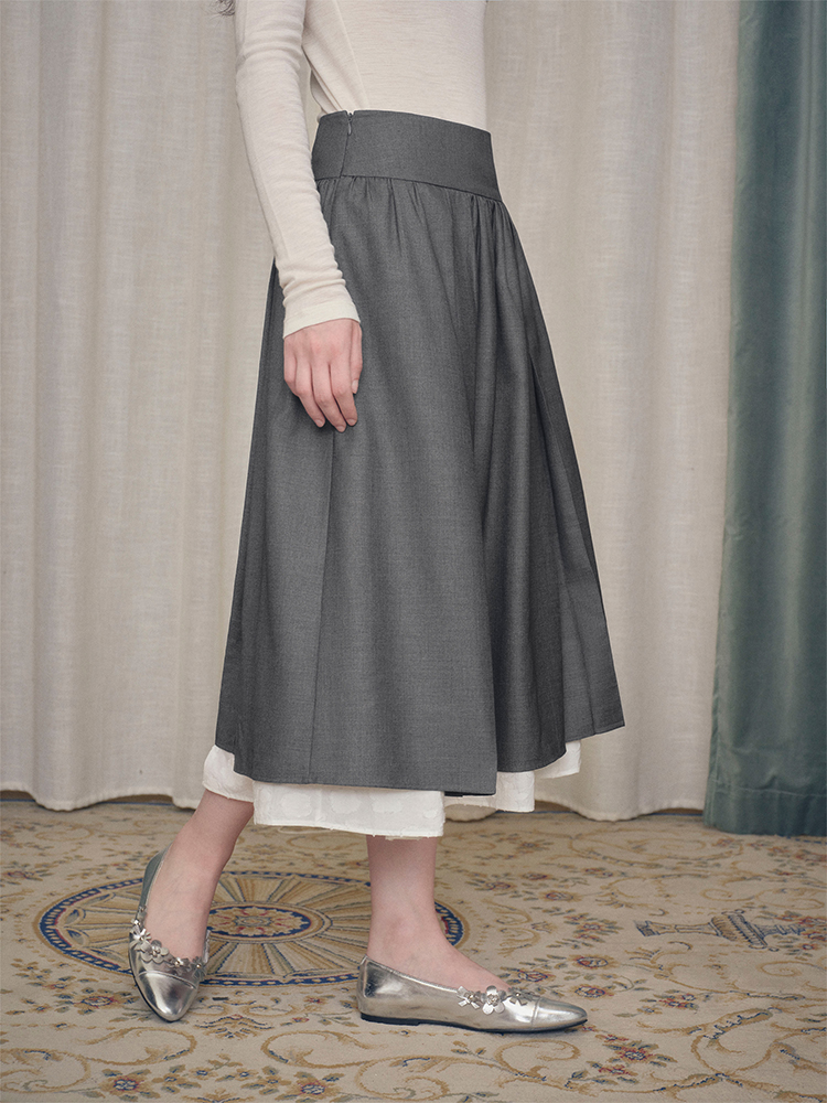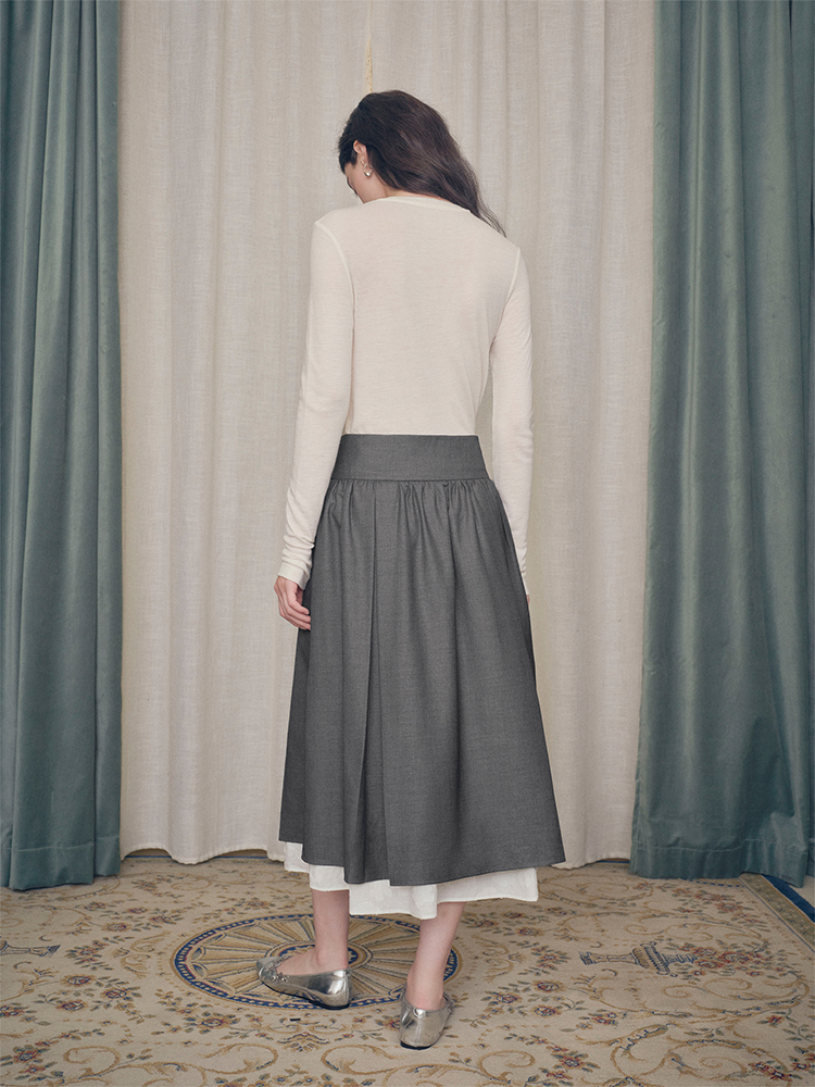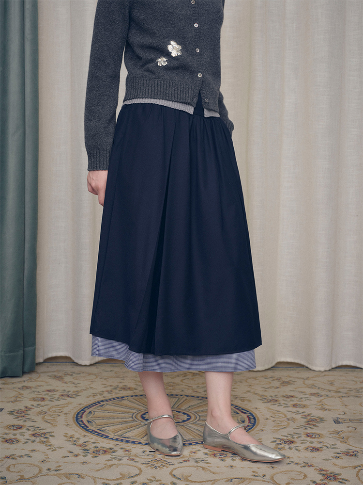 ForPoem 现货 24/FW原创设计撞色边精纺羊毛A字中长半裙