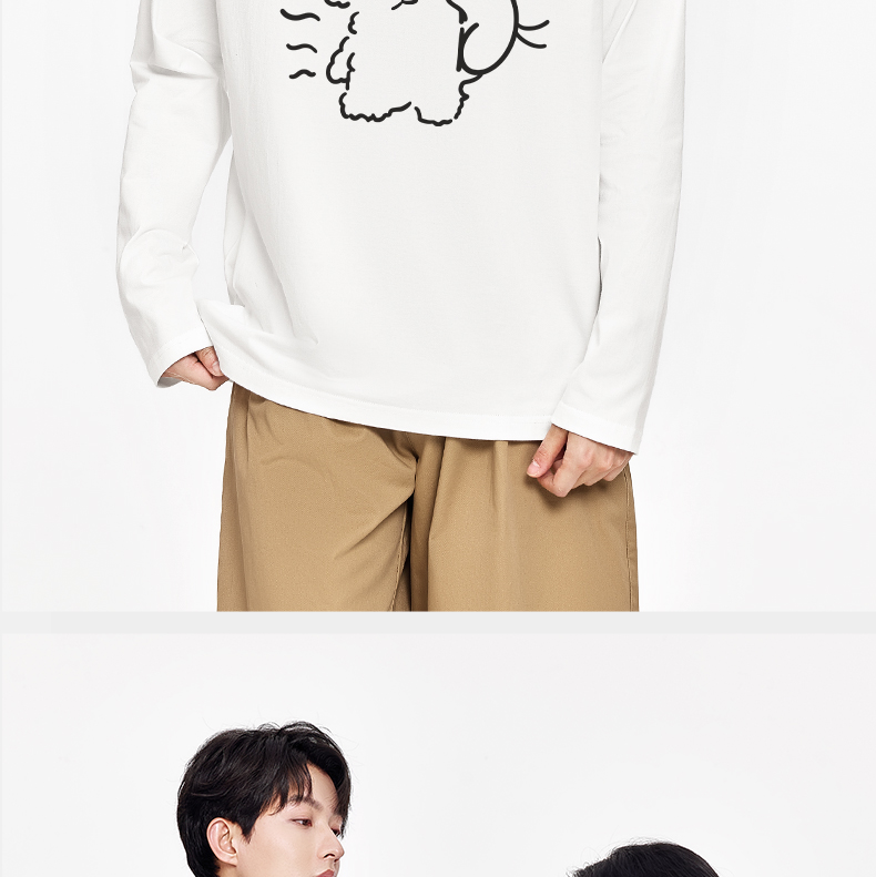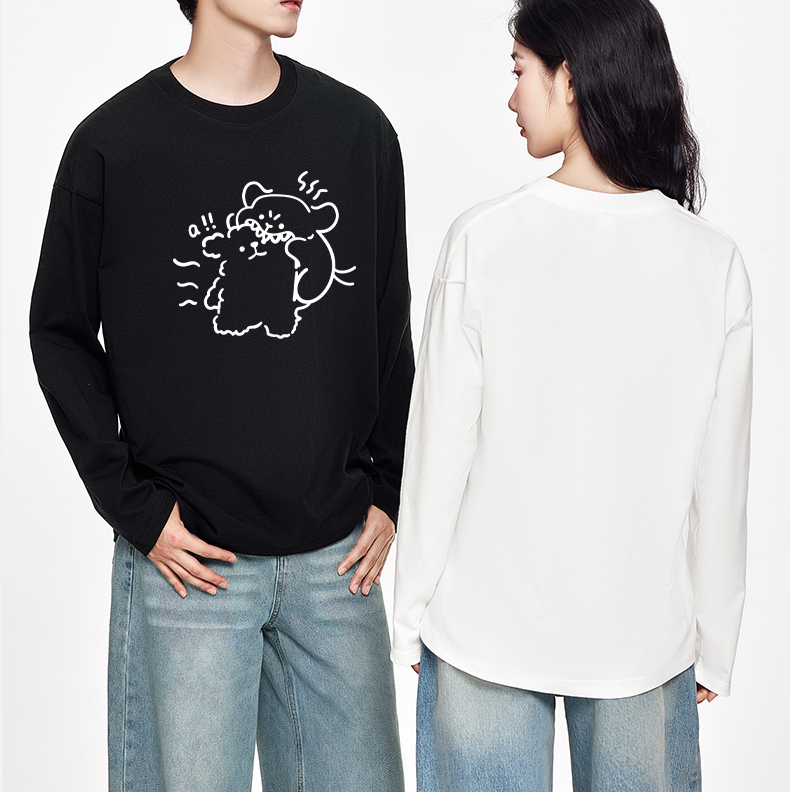 「棉的美学」白色纯棉T恤春秋新款打底衫萌趣印花设计小众长袖上衣