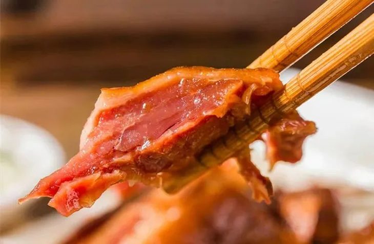 一只好的酱鸭,一定是凑近就可以闻到一股沁人的酱香气味,肉色枣红,皮爽骨香,味道才称得上鲜美。