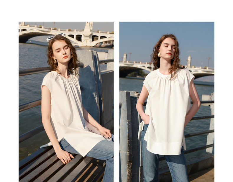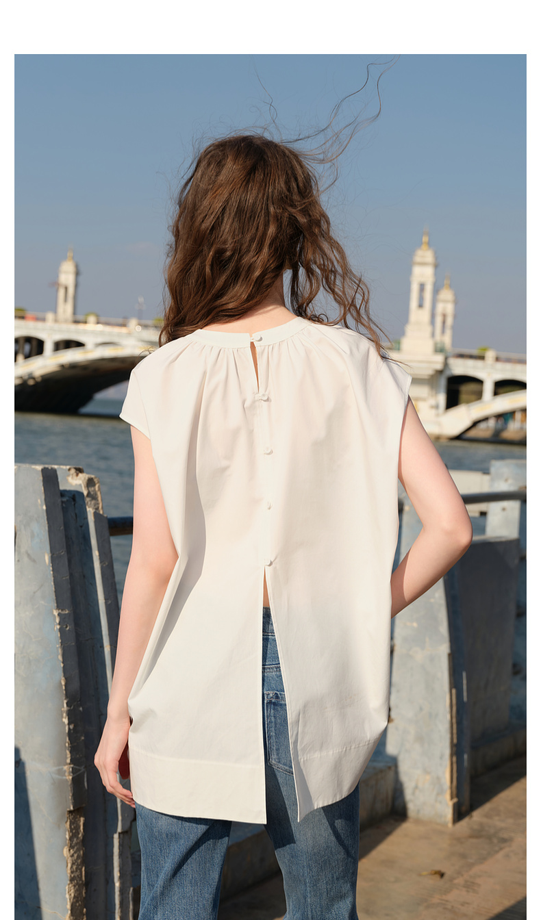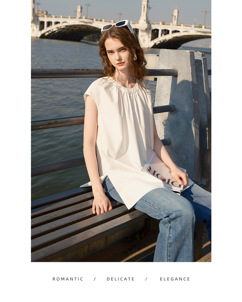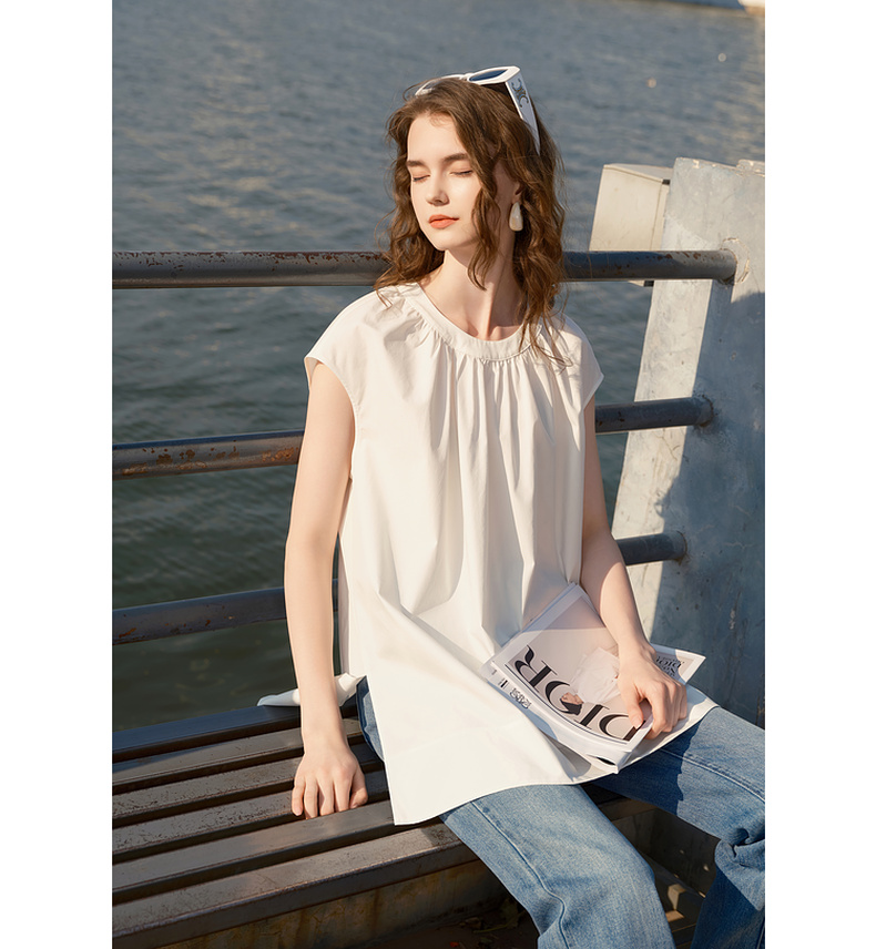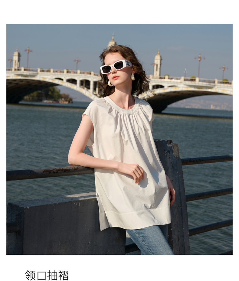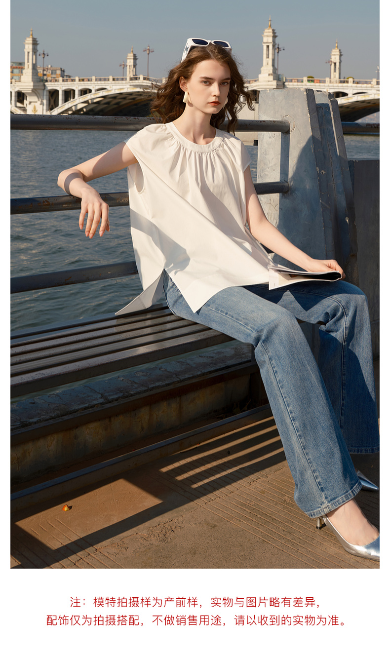 三彩2025夏季新款莱赛尔小衫圆领包肩袖上衣宽松极简风M