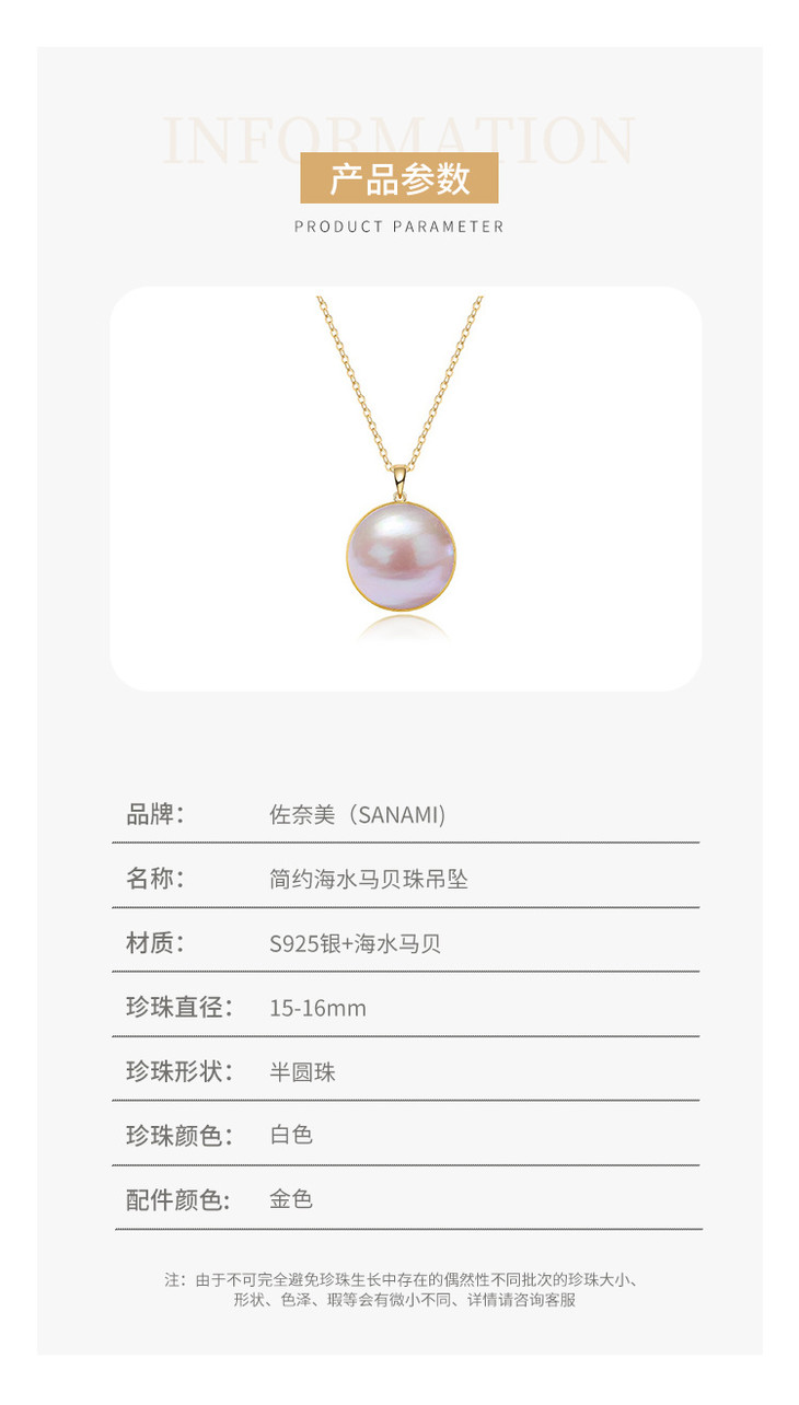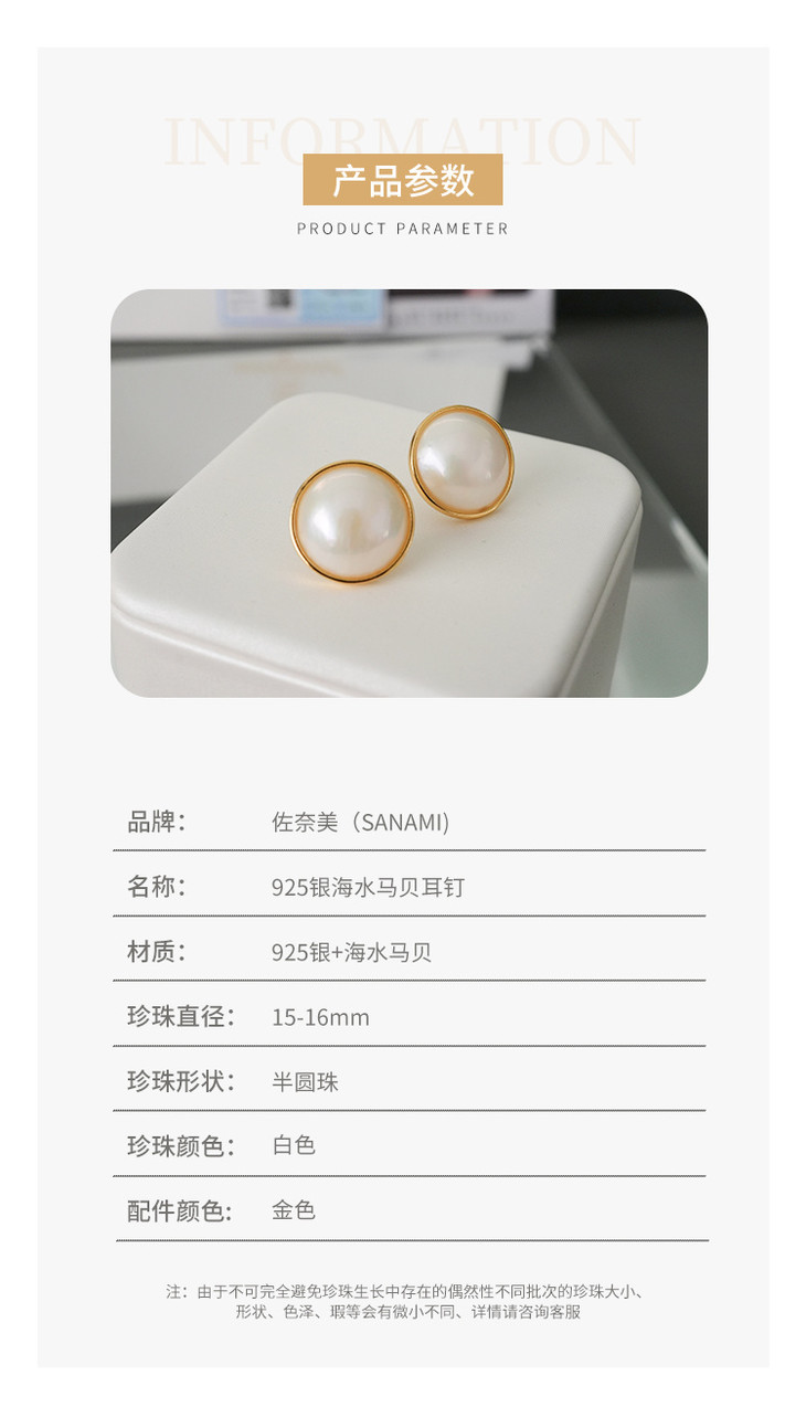 而且马贝珍珠首饰系列,马贝珠背面贝壳每个角度的纹理光泽都不一样,没有一颗是相同。
