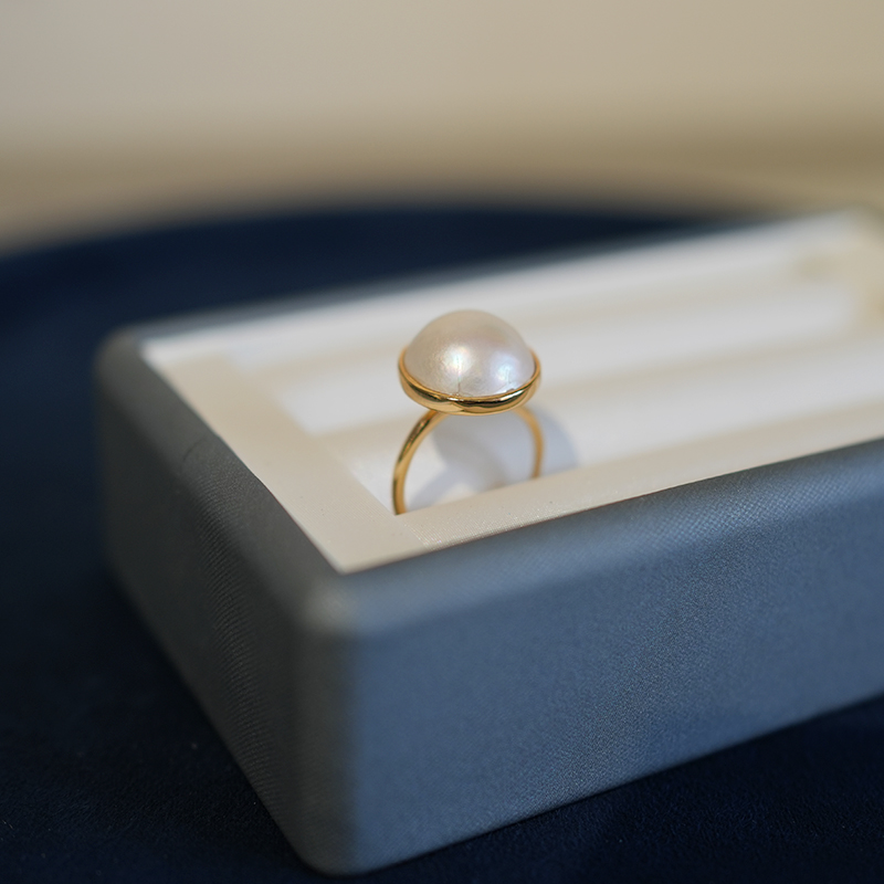 美人值得配美物,适逢母亲节、情人节佳节,我们特地为你选来这套市面少见的马贝珍珠首饰系列:戒指、耳钉、项链。