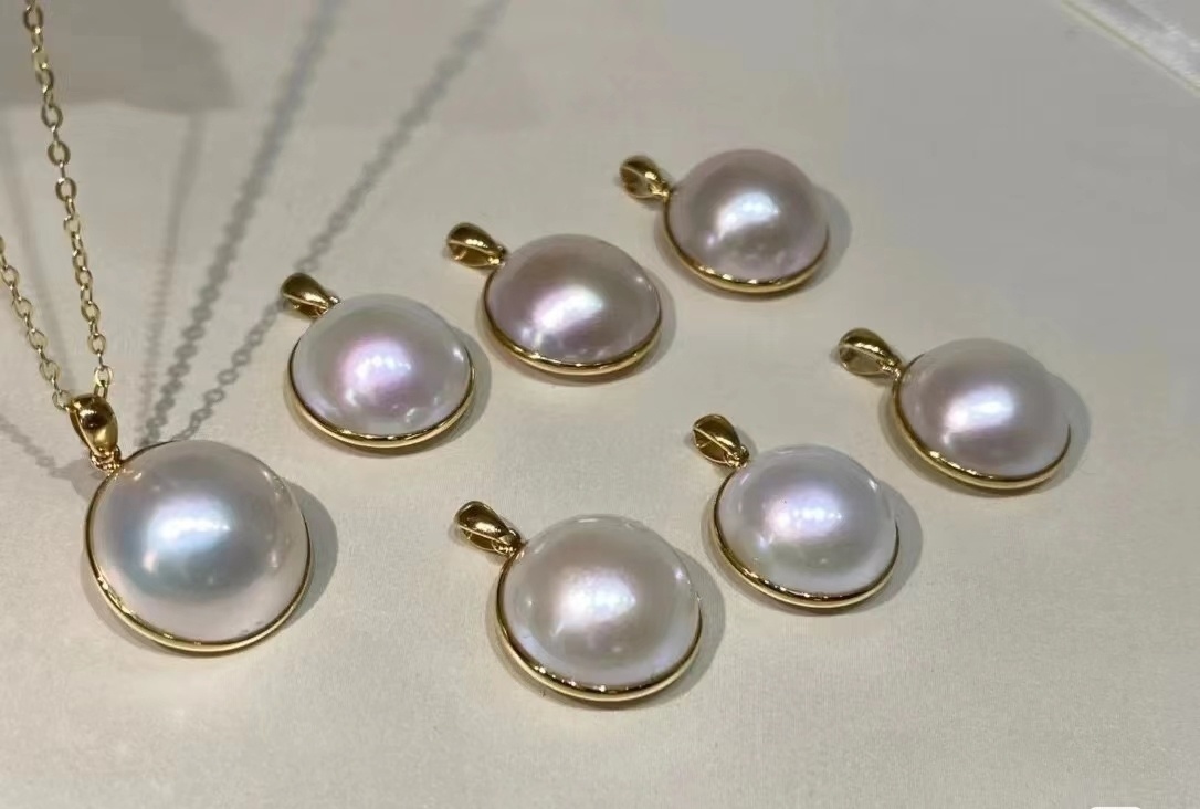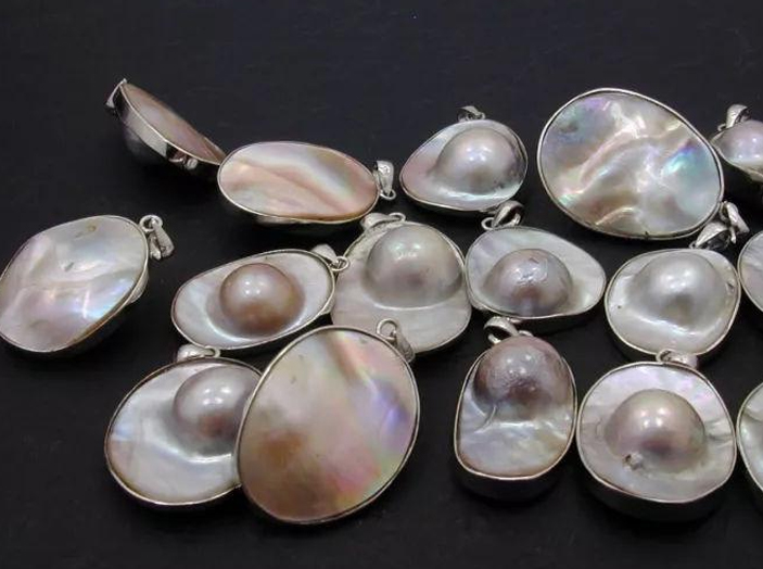 采集时会将珍珠连同贝壳壁一起取下抛磨。一面为珍珠,一面为贝壳,这样制作出来的首饰,佩戴起来比球状珍珠更舒服。