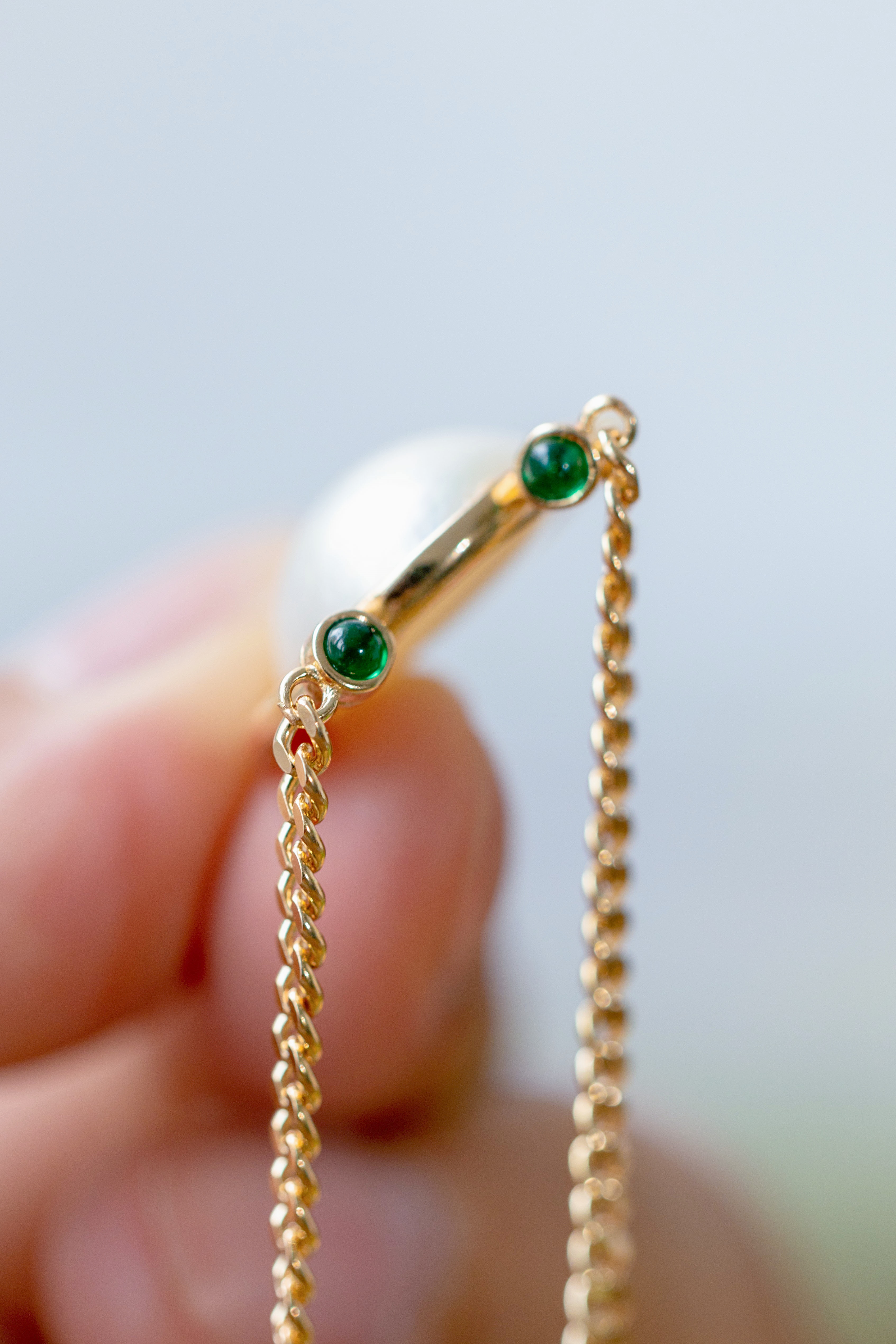 另一款尺寸更大,祖母绿+马蹄扣的点缀,让它看起来更大气雍容,母亲节送给长辈肯定是不错的选择。