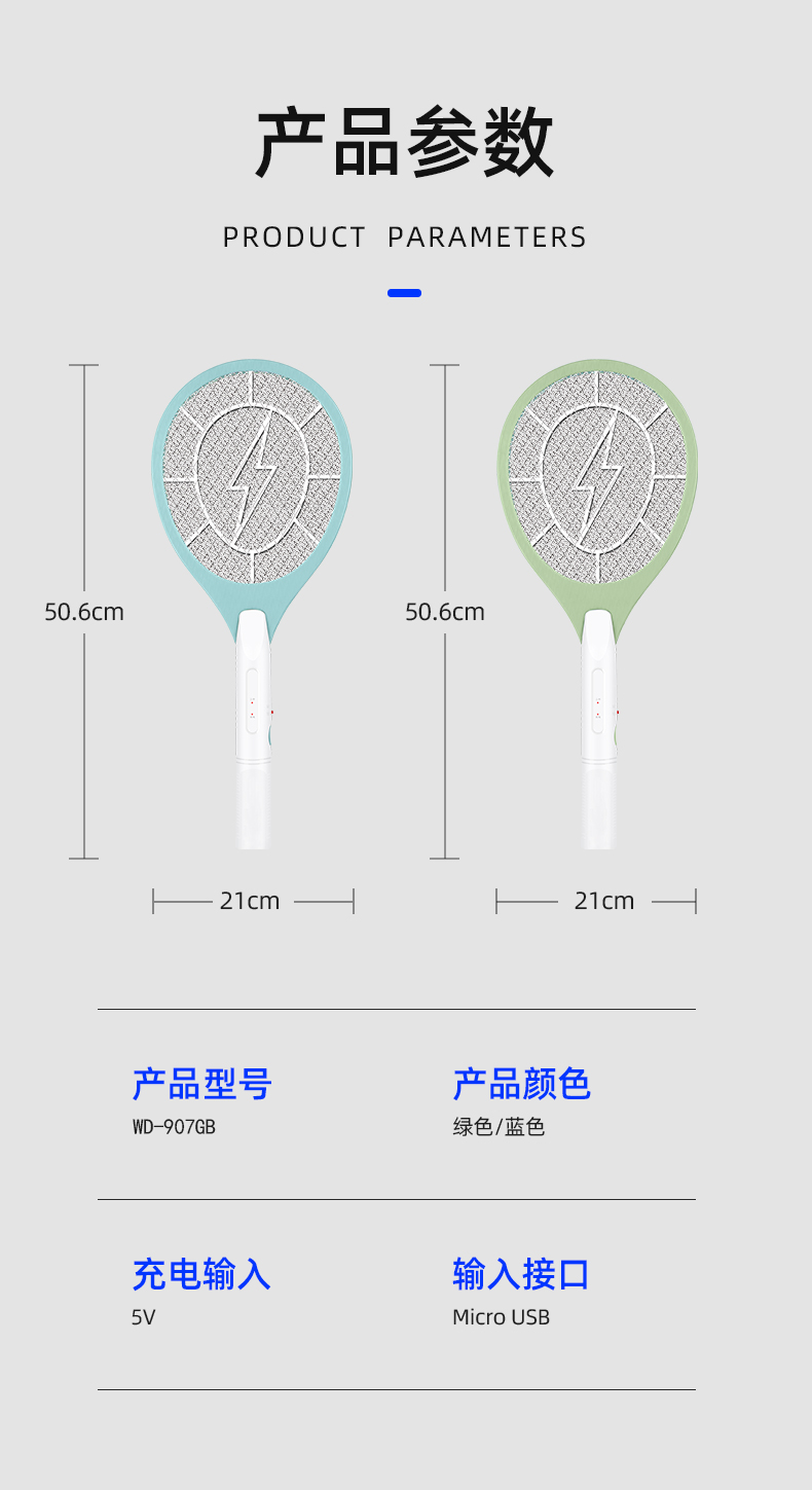 纬达斯电蚊拍苍蝇拍灭蚊拍USB充电物理灭蚊WD-907GB包邮
