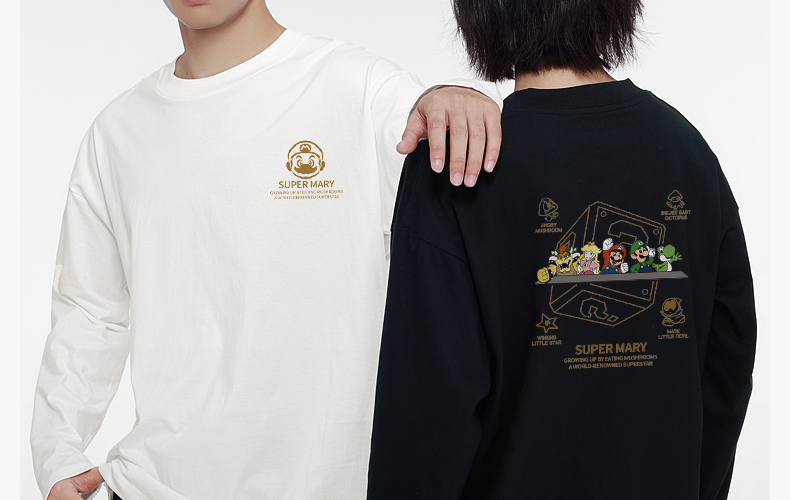 「棉的美学」 超级玛丽印花纯棉长袖~秋季休闲百搭印花长袖男女同款