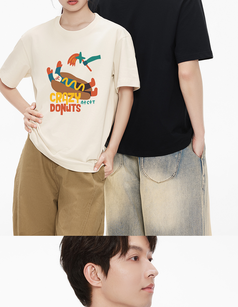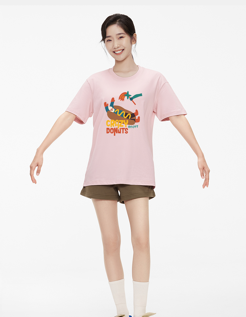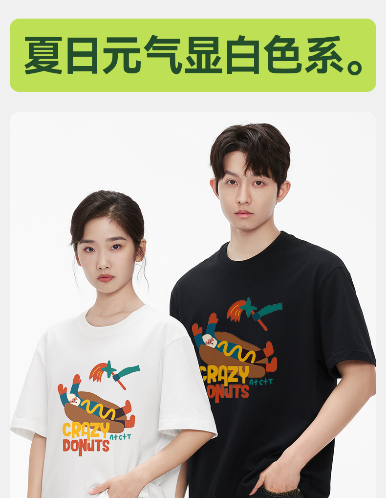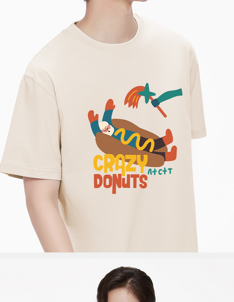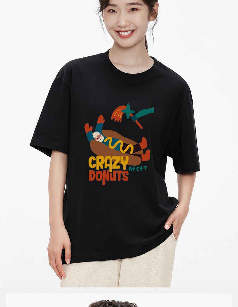「棉的美学」个性潮流彩色热狗印花T恤小众设计舒适纯棉百搭上衣